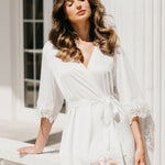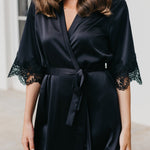 They bring joie de vivre to your days, dancing and Rosè to your nights. Celebrate your treasured ones with our Chiara Satin Lace Trim Robe.