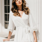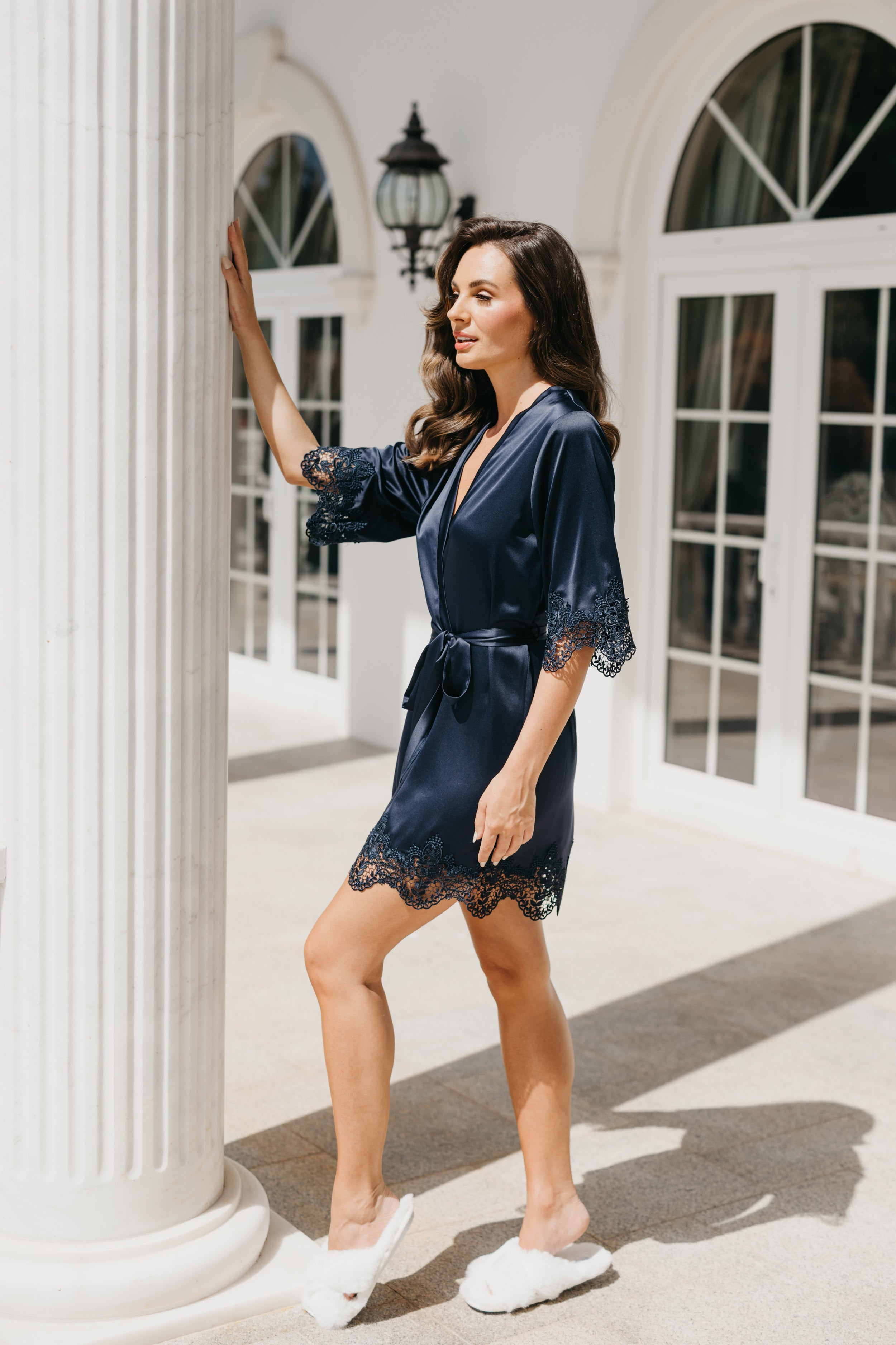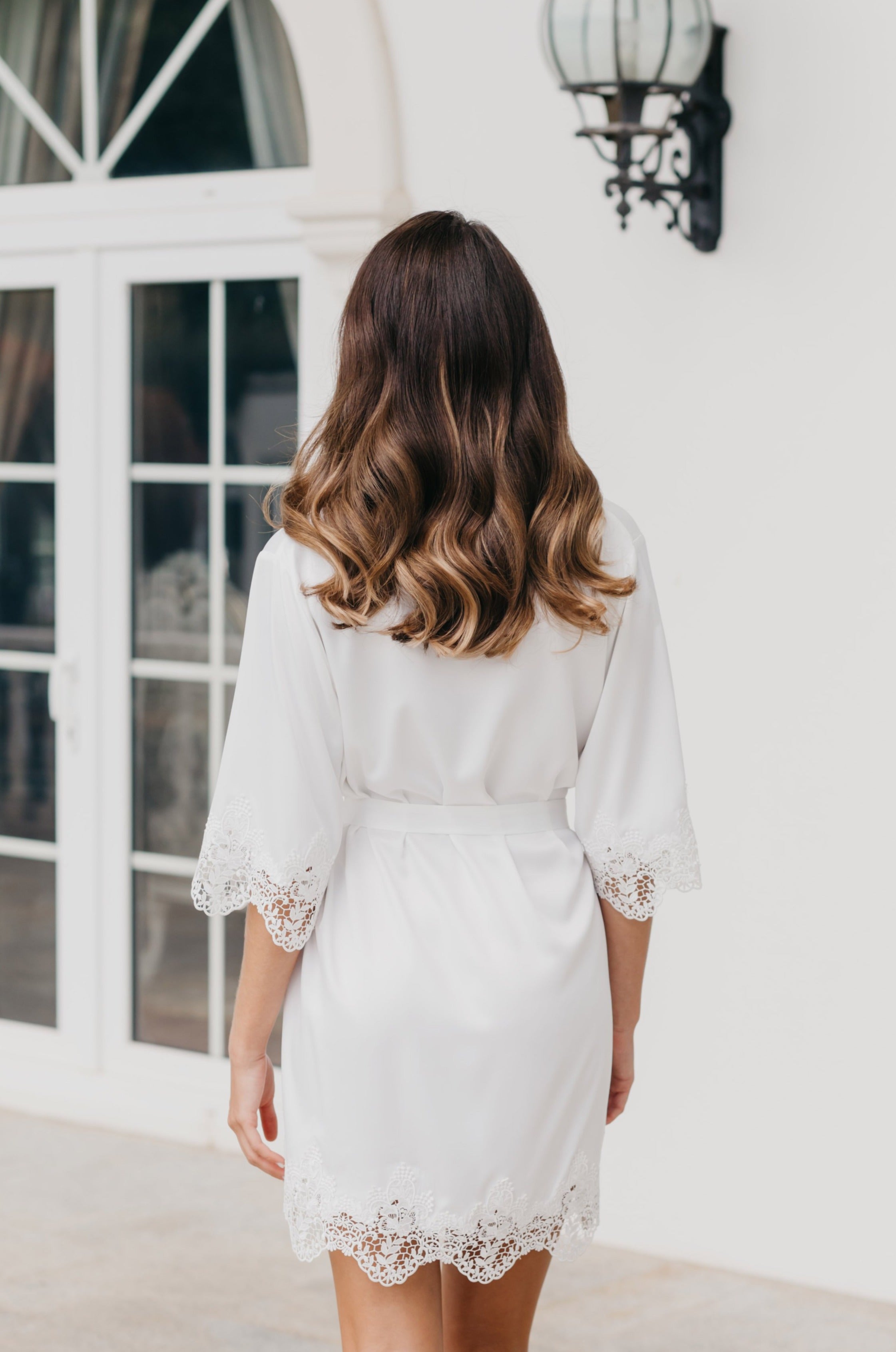 They bring joie de vivre to your days, dancing and Rosè to your nights. Celebrate your treasured ones with our Chiara Satin Lace Trim Robe.