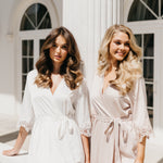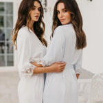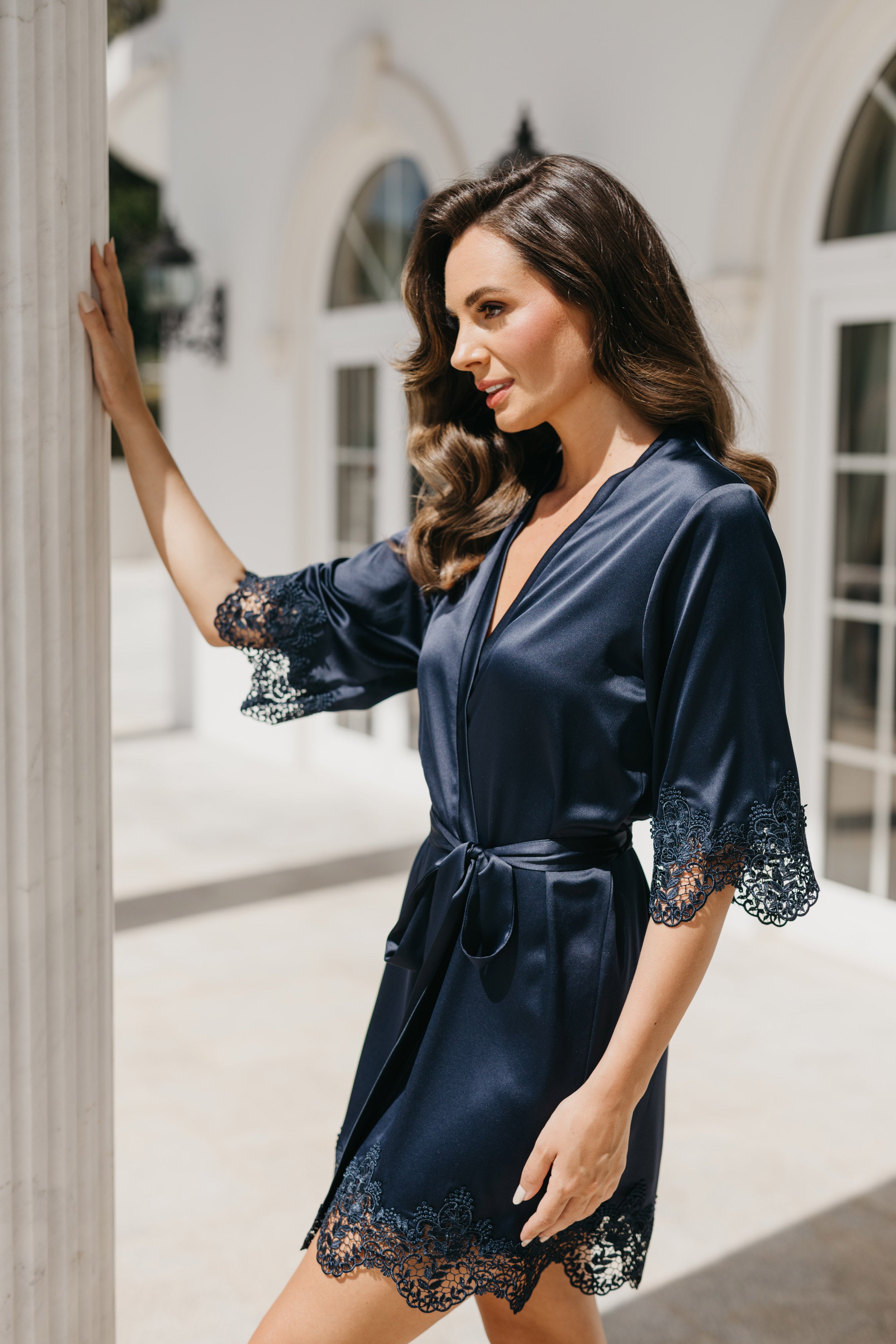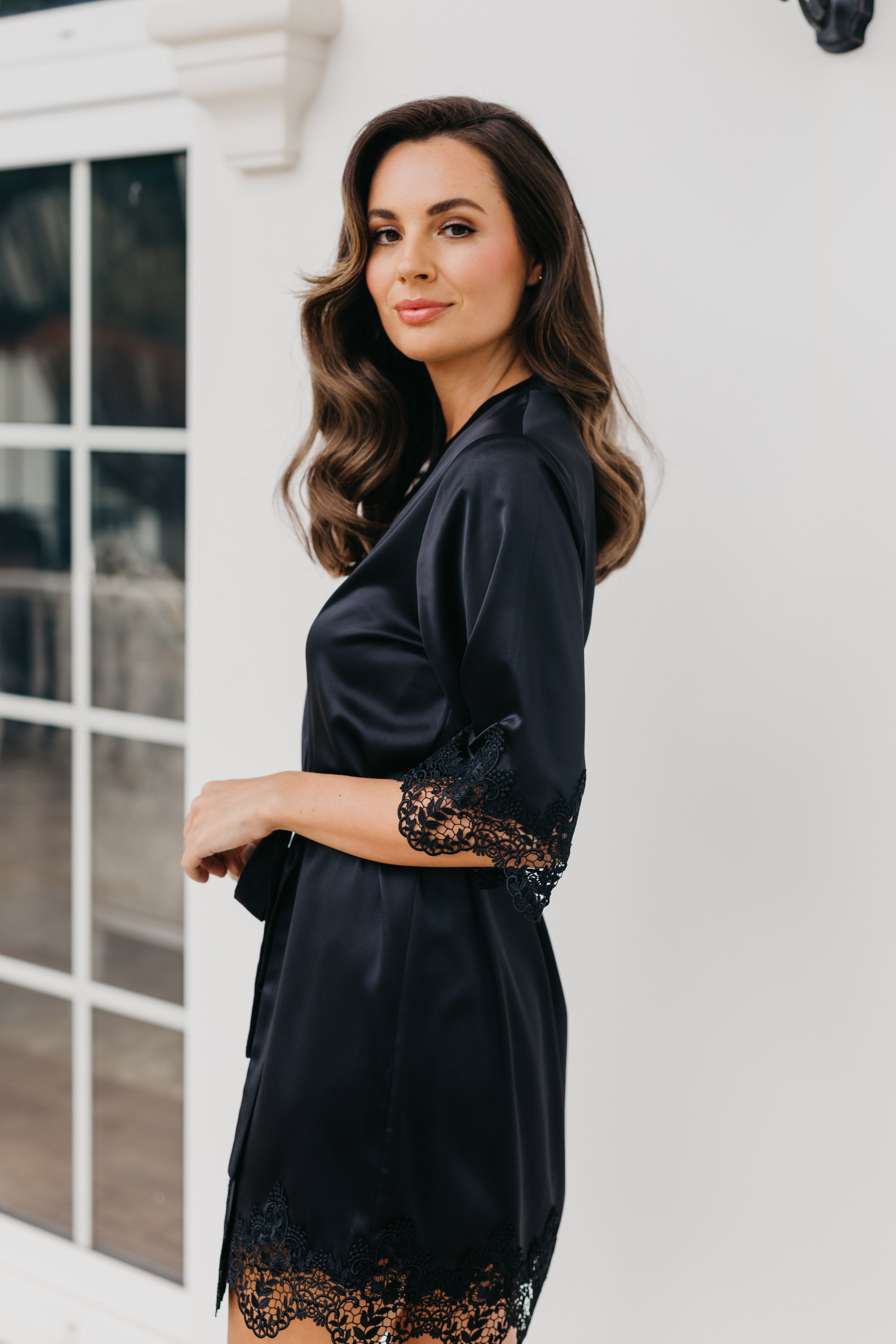 They bring joie de vivre to your days, dancing and Rosè to your nights. Celebrate your treasured ones with our Chiara Satin Lace Trim Robe.