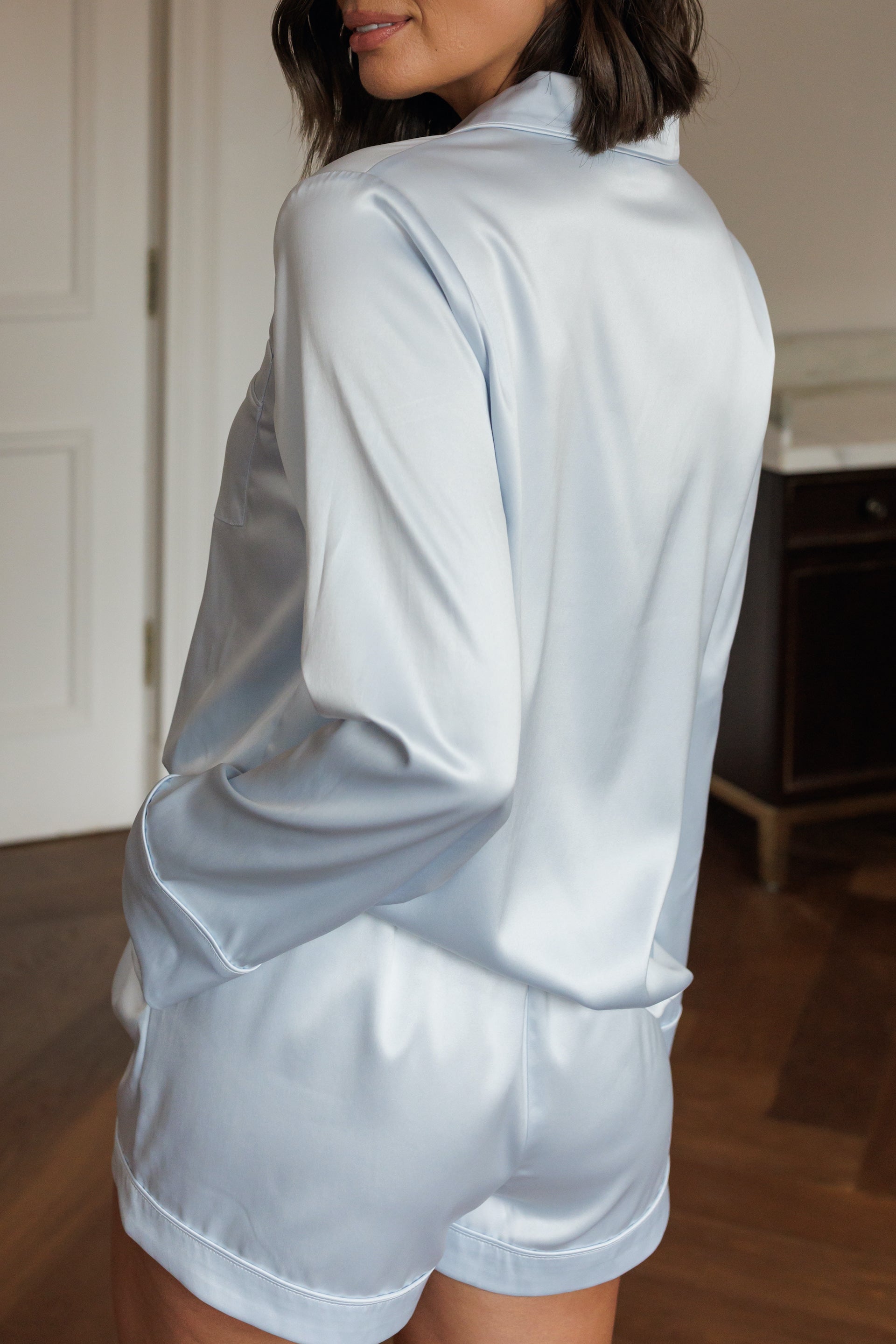 Celebrate your unique forever love with our Zoe PJ set, available in 5 charming colours. Add personalisation to commemorate your special day or new last name. Mix and match with the Lucia and Sienna sleep sets to honour the individuality of your entire bridal party. Crafted from our new premium satin quality, developed by us for you.