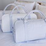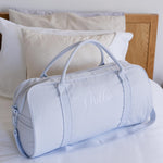 Make packing for sleepovers a breeze with our personalised unique duffle bag. Crafted from sturdy cotton canvas and featuring matching hardware and zippers, it can carry everything you need for your next adventure. Plus, its additional shoulder strap lets you carry your keepsakes with comfort and style.