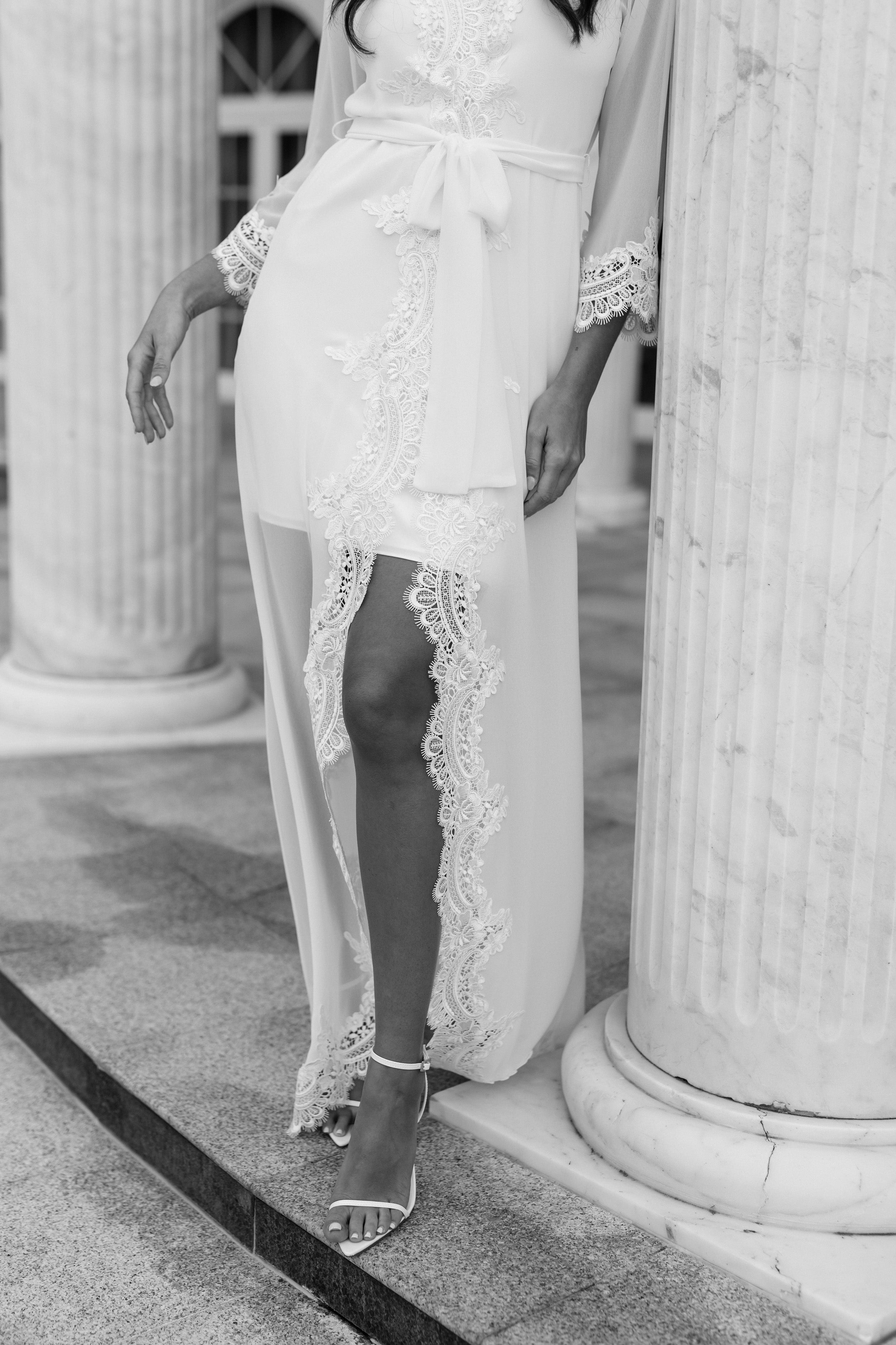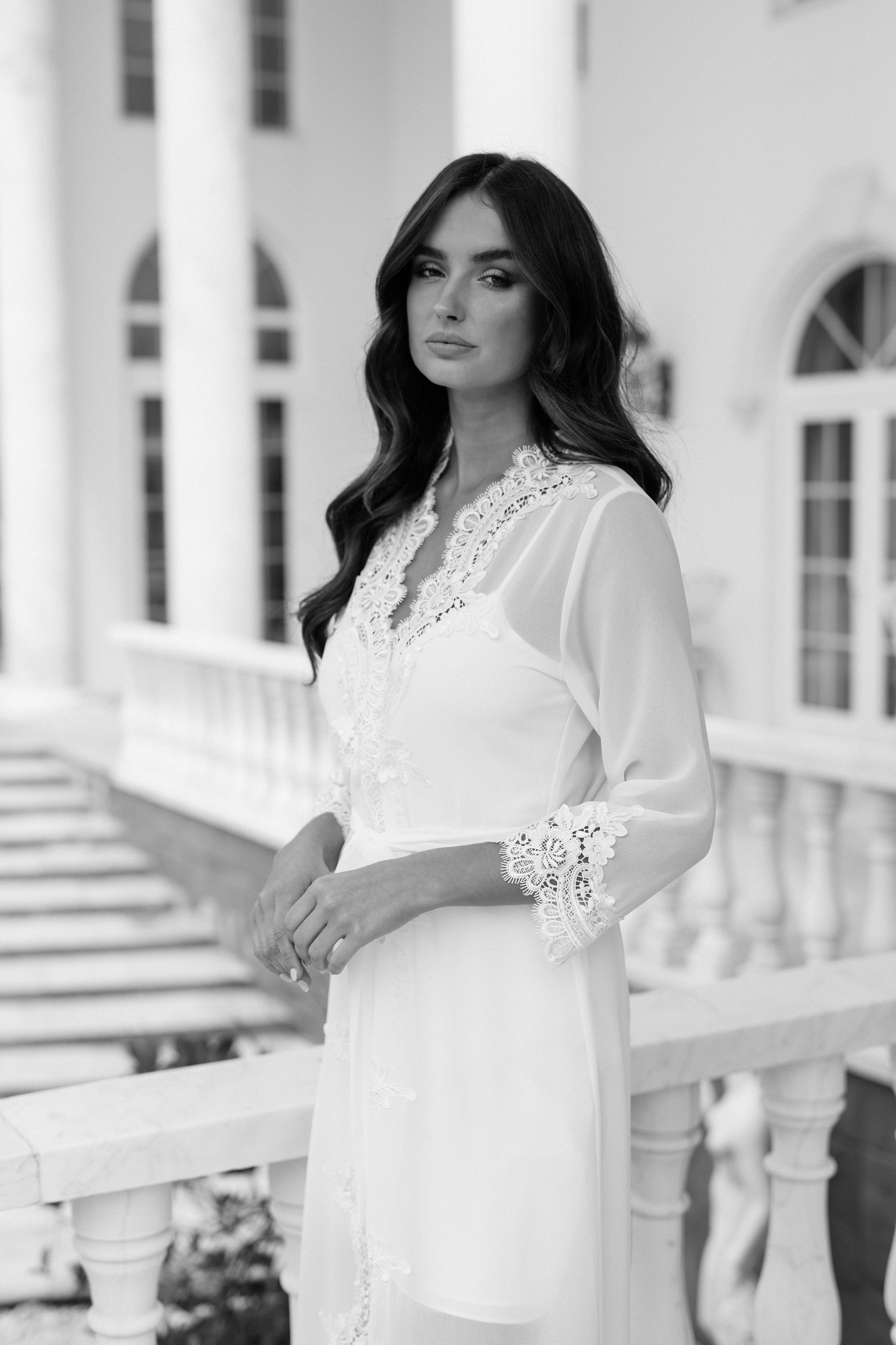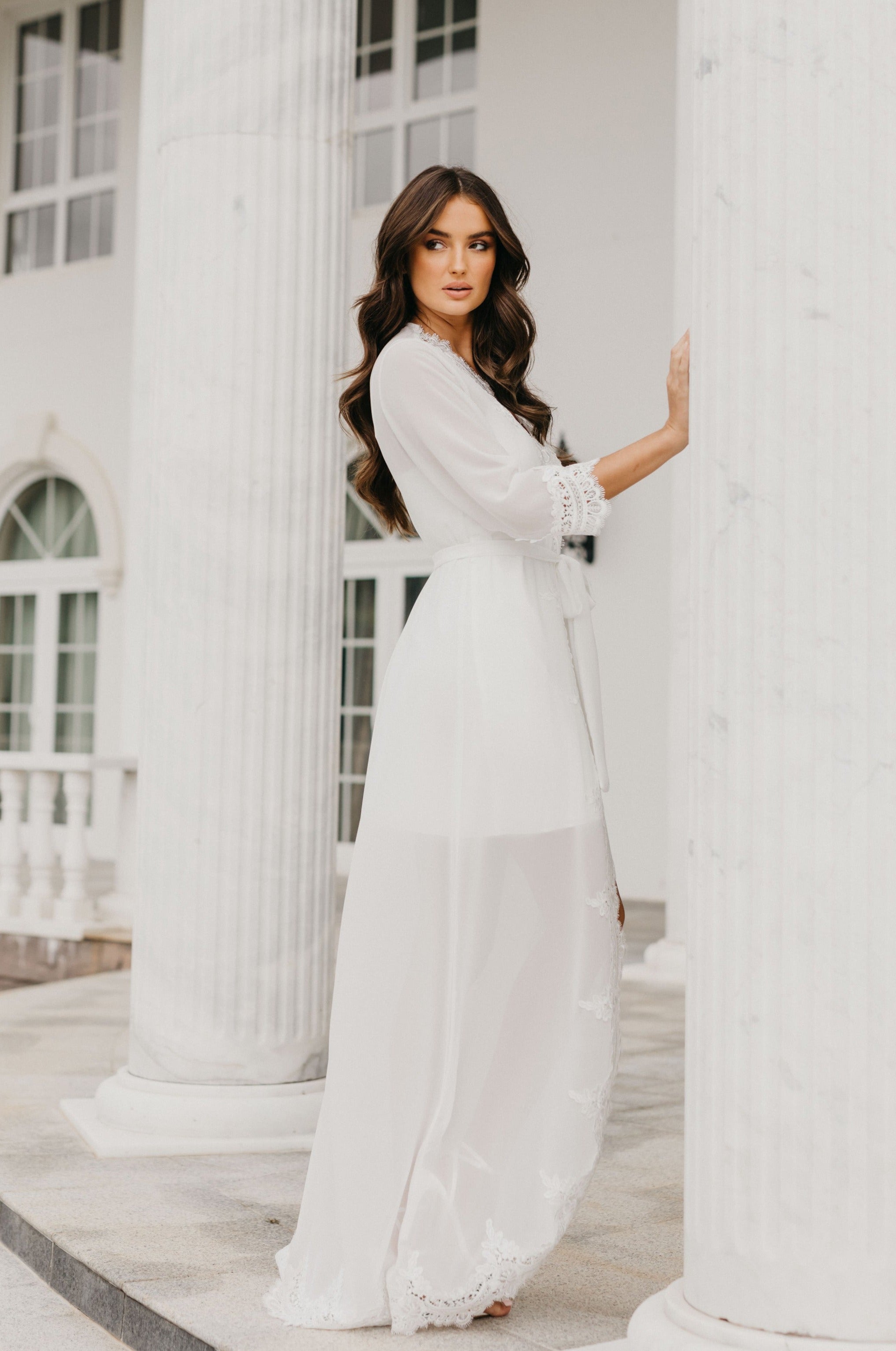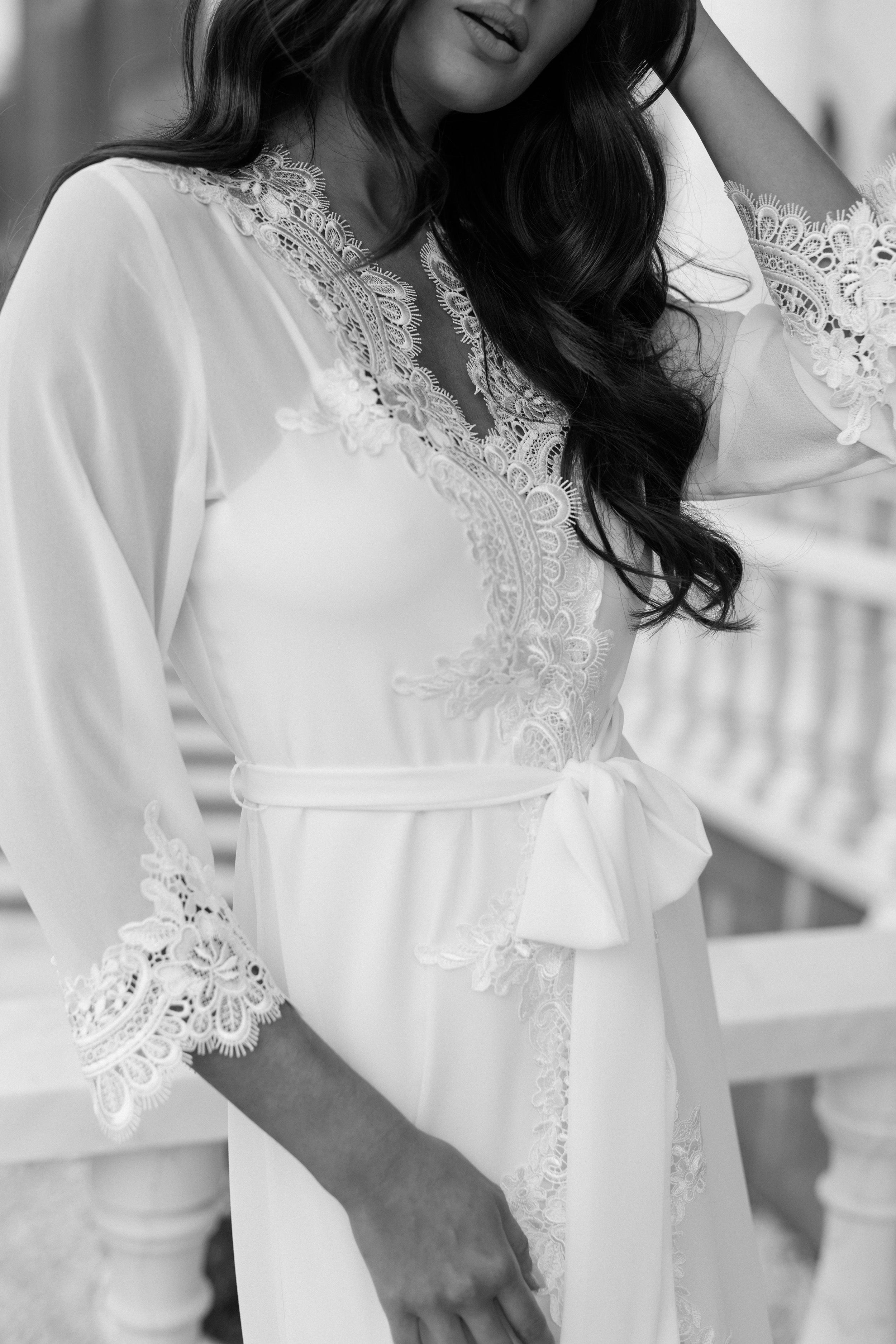 Hannah Lace Trim Maxi Bridal Robe - Includes Slip