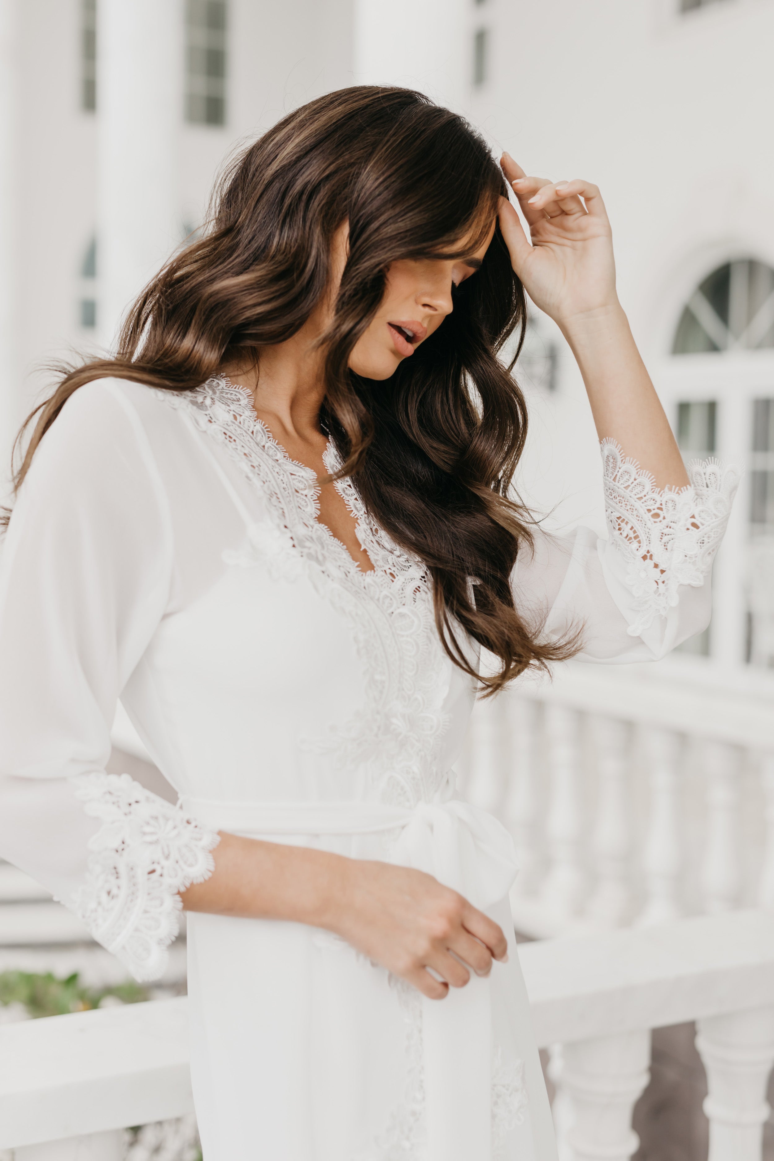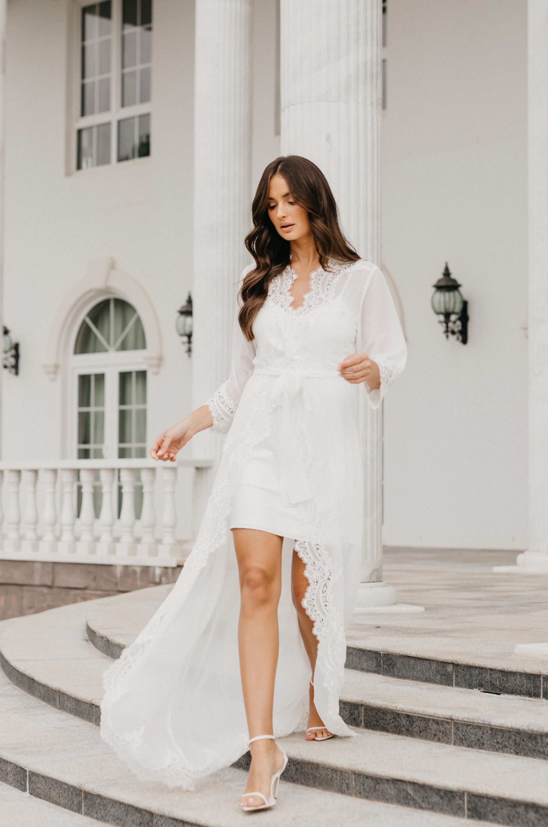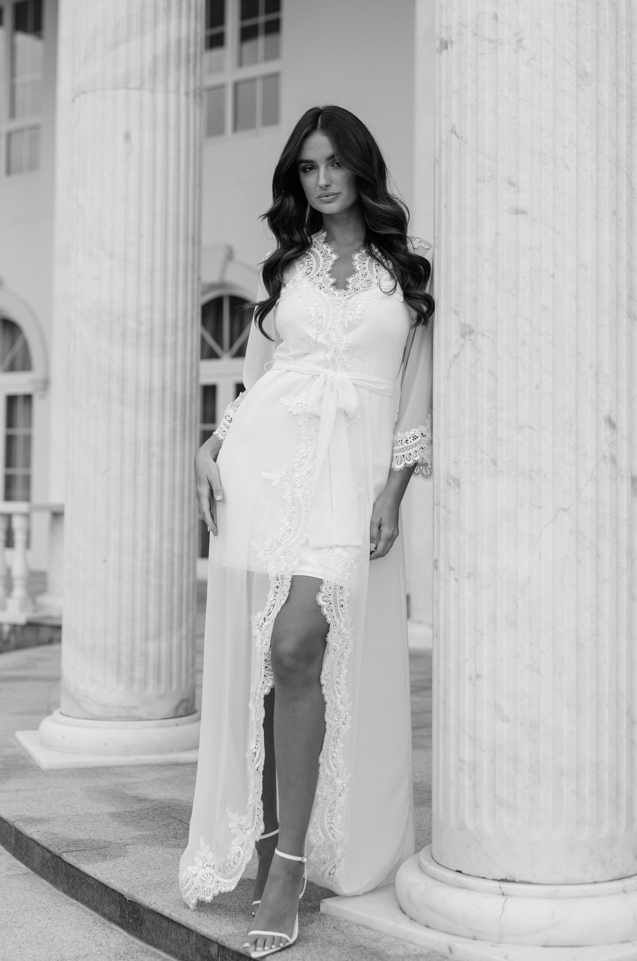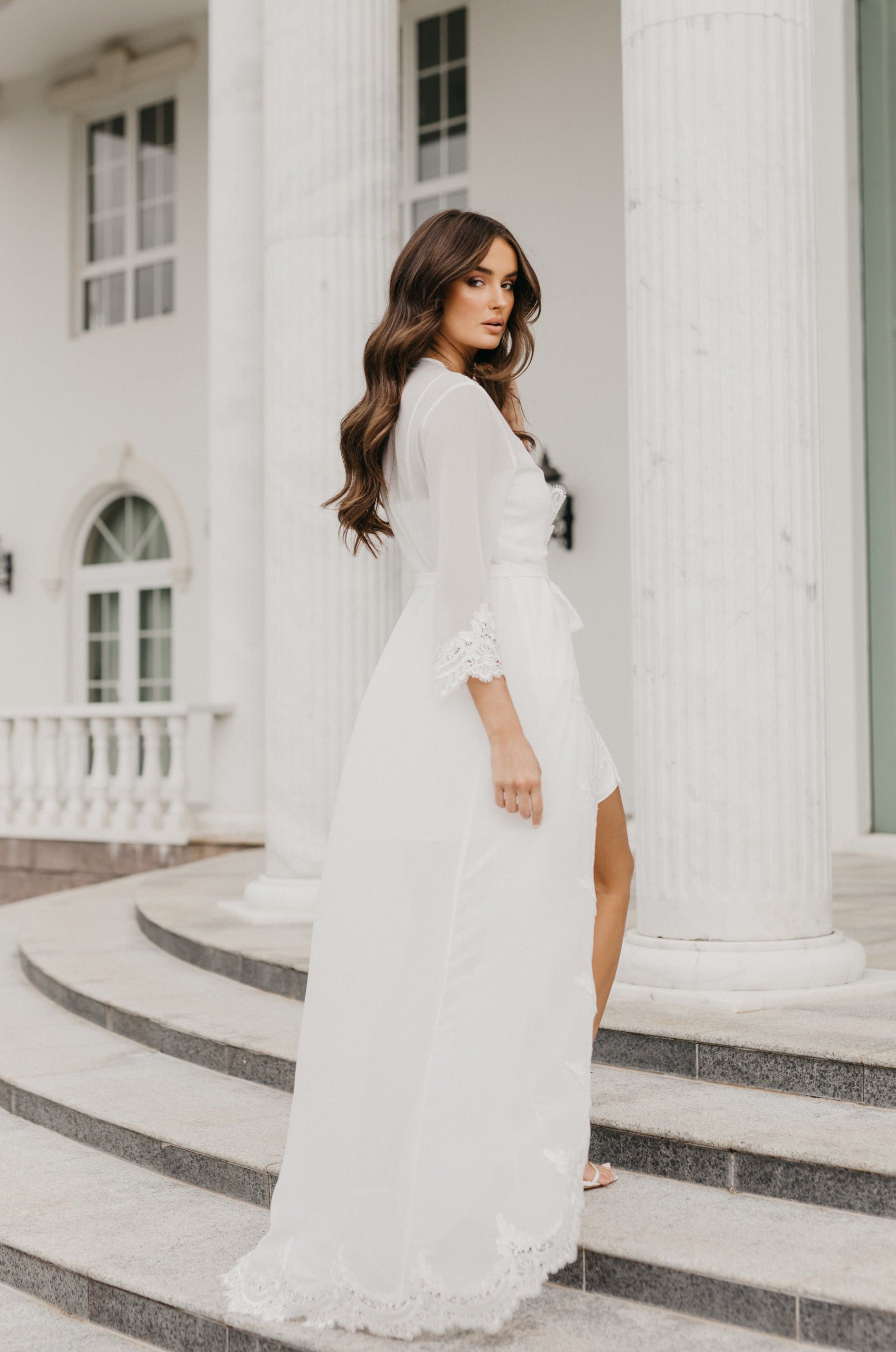 Hannah Lace Trim Maxi Bridal Robe - Includes Slip
