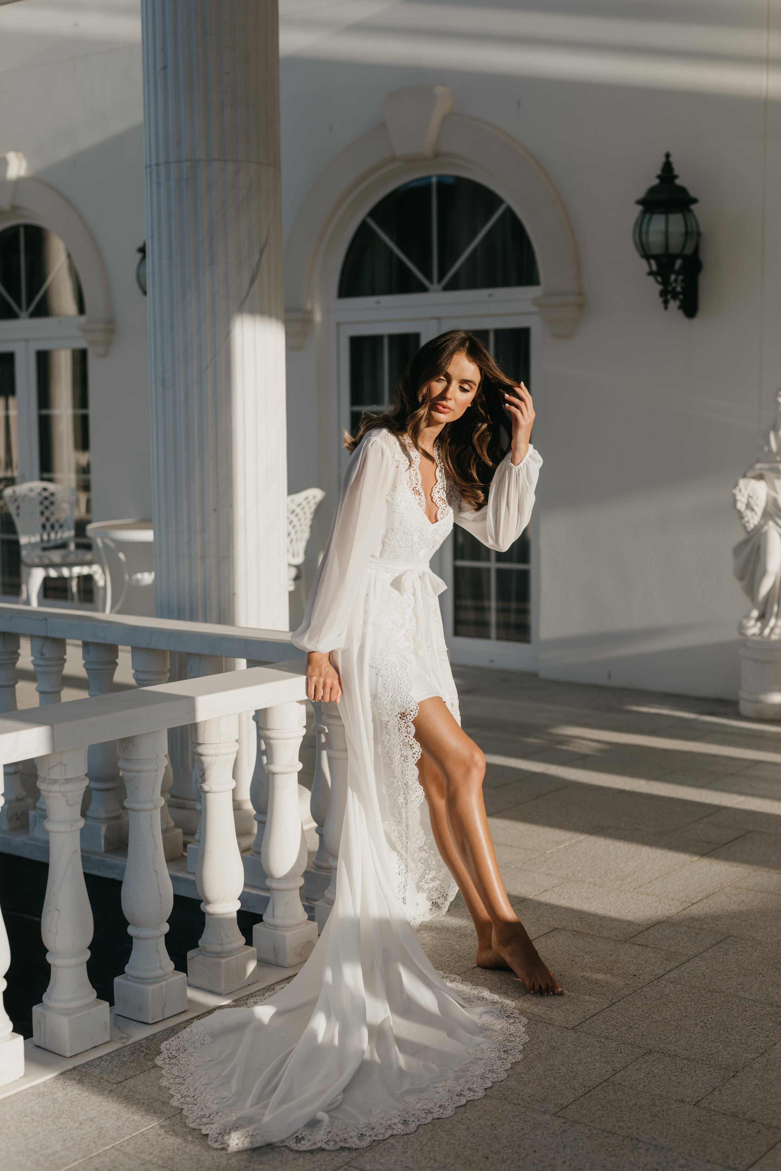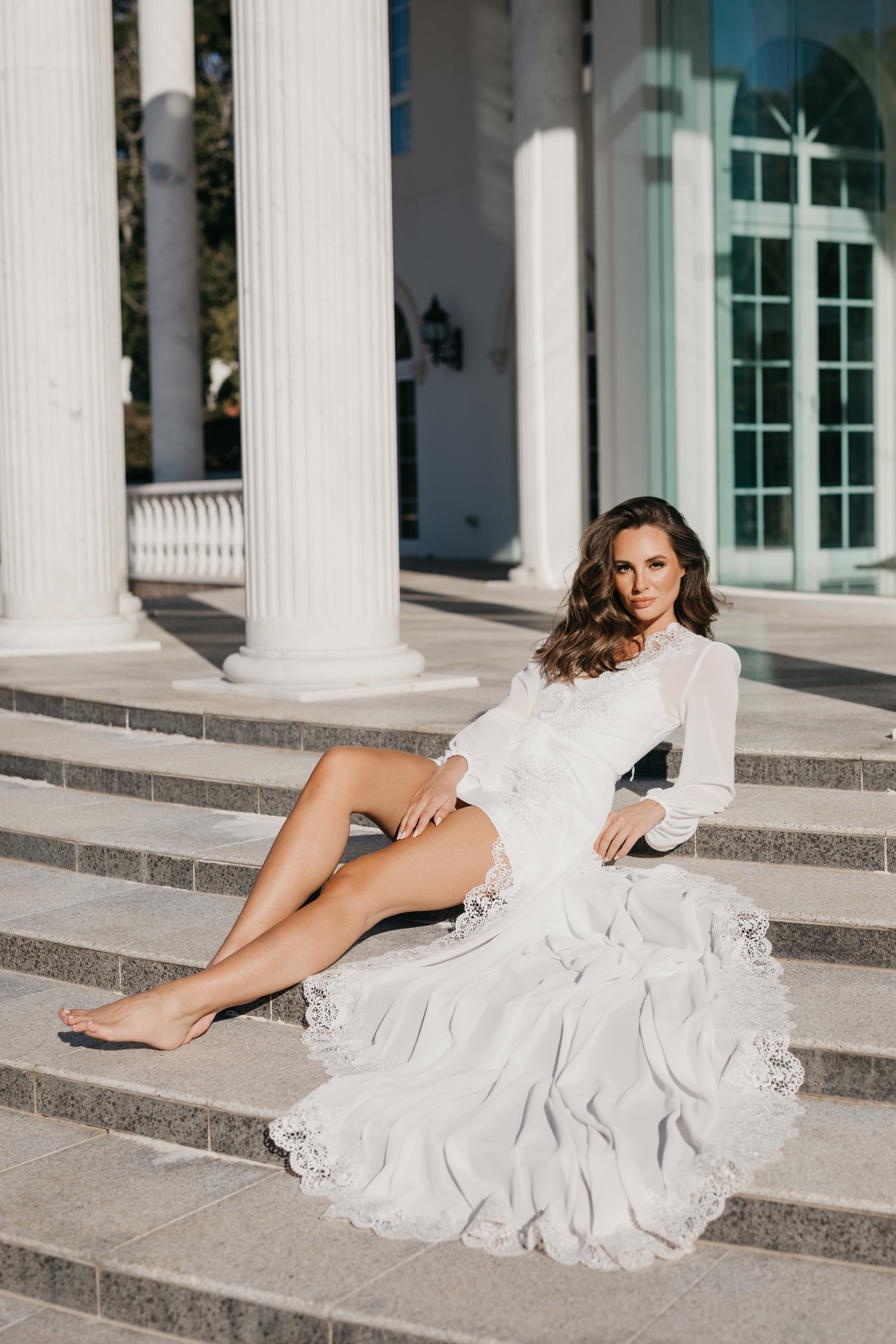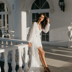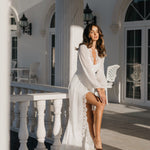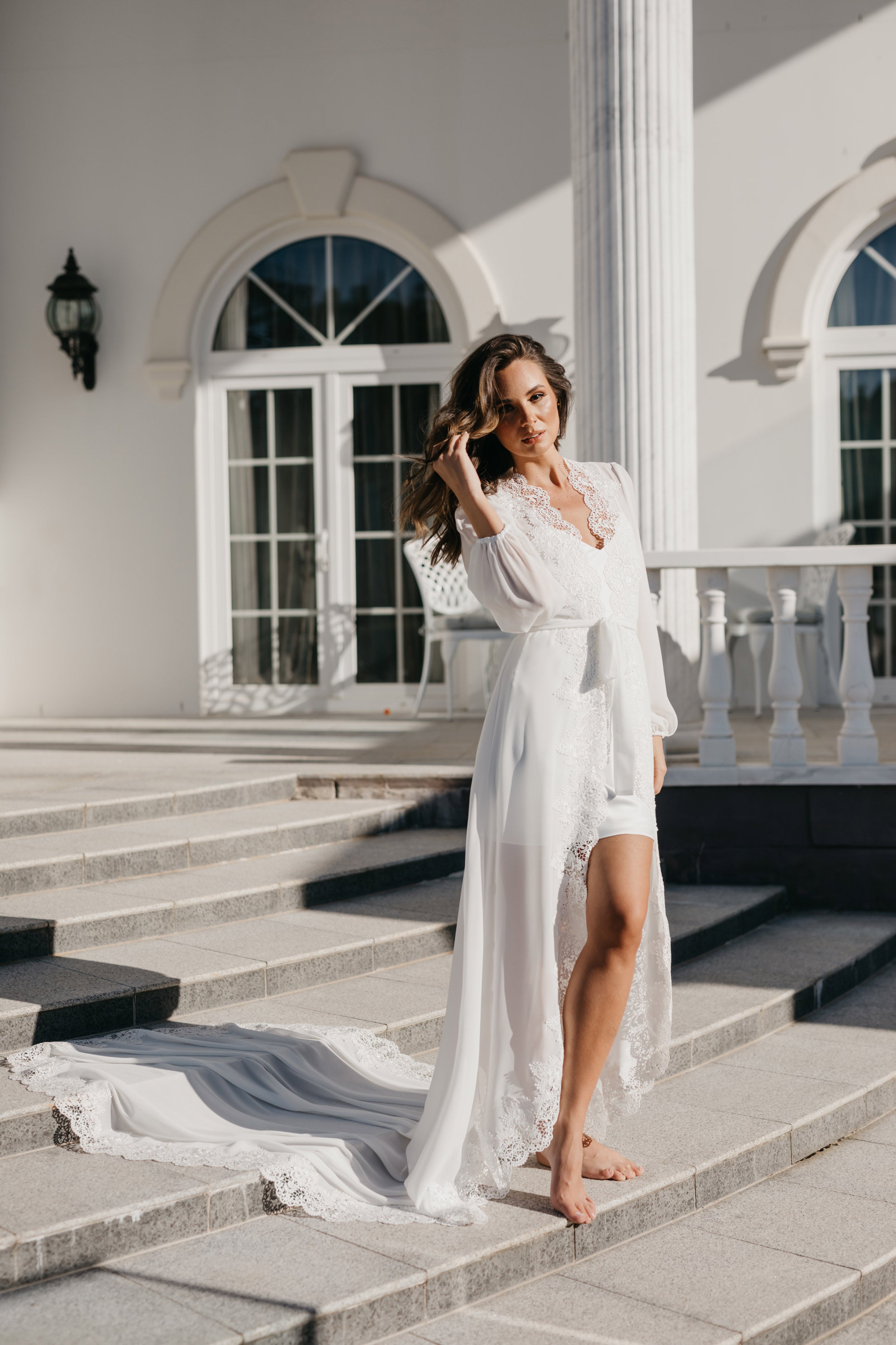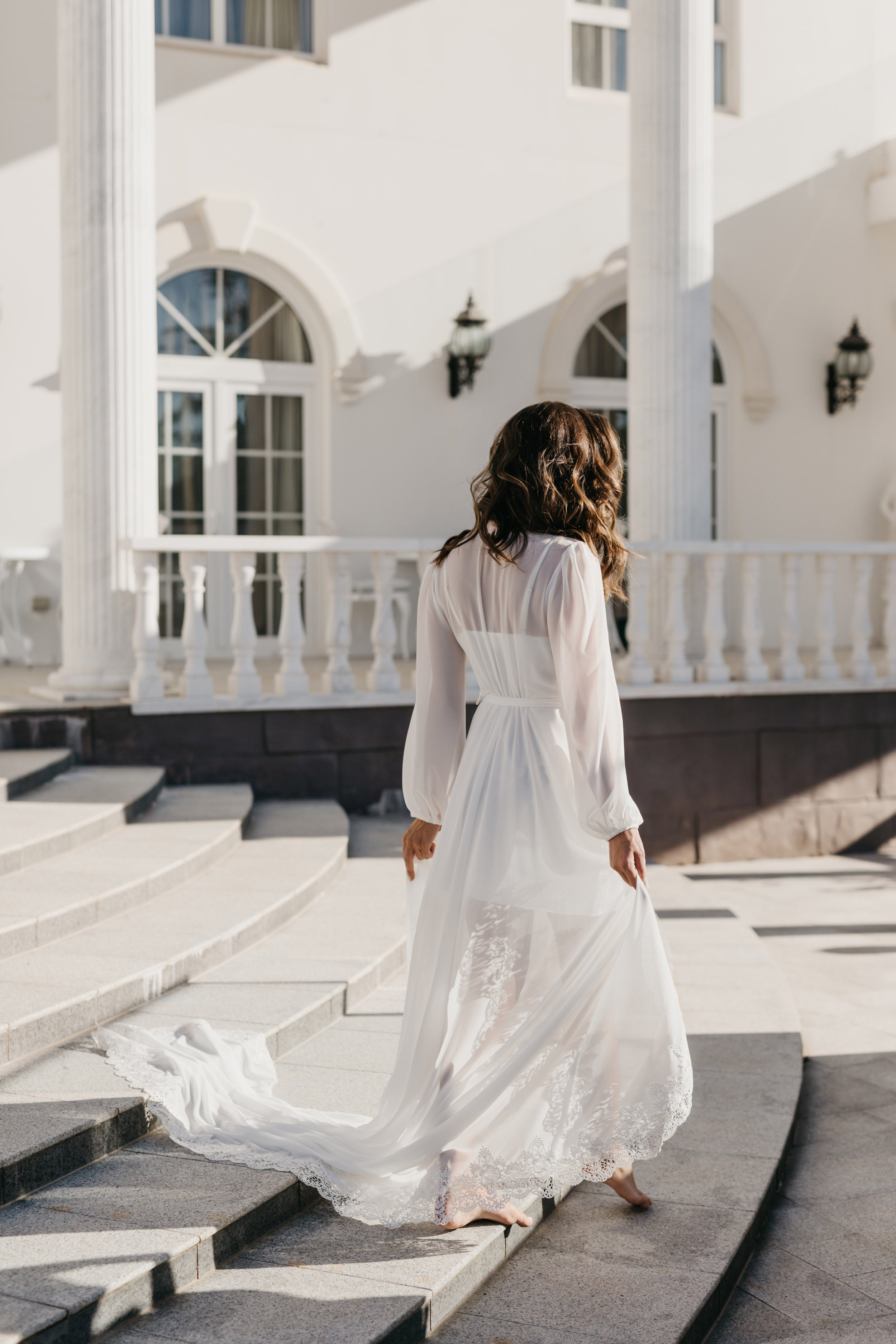 Bridal robes and sleepwear are packed in soft white satin gift bags with ribbon and a gift card, then delivered in postal sachets.