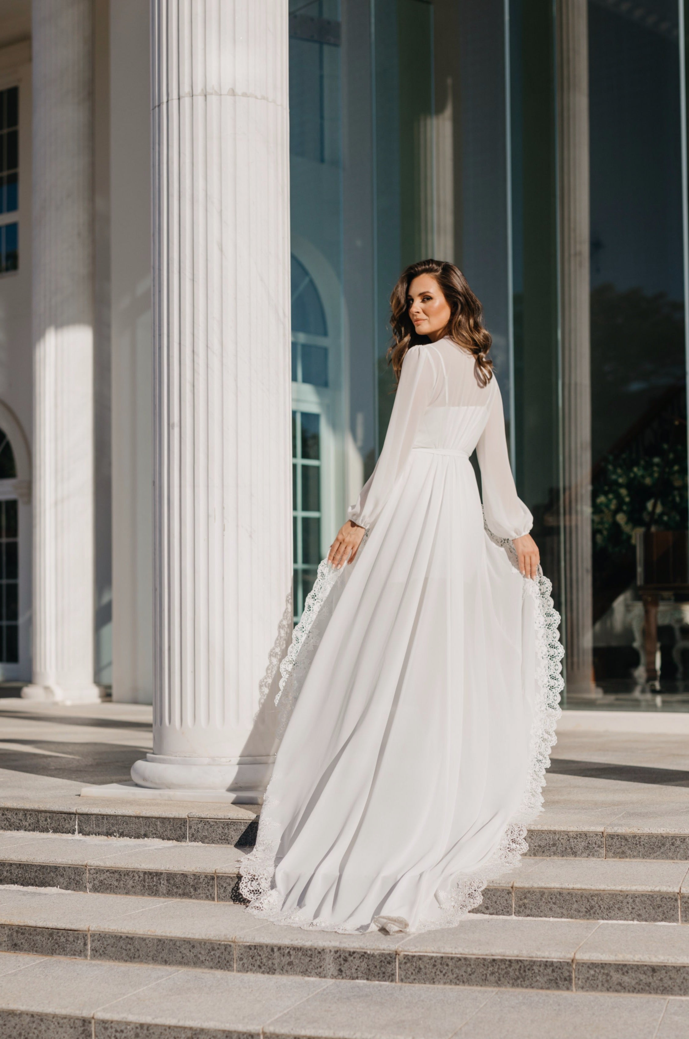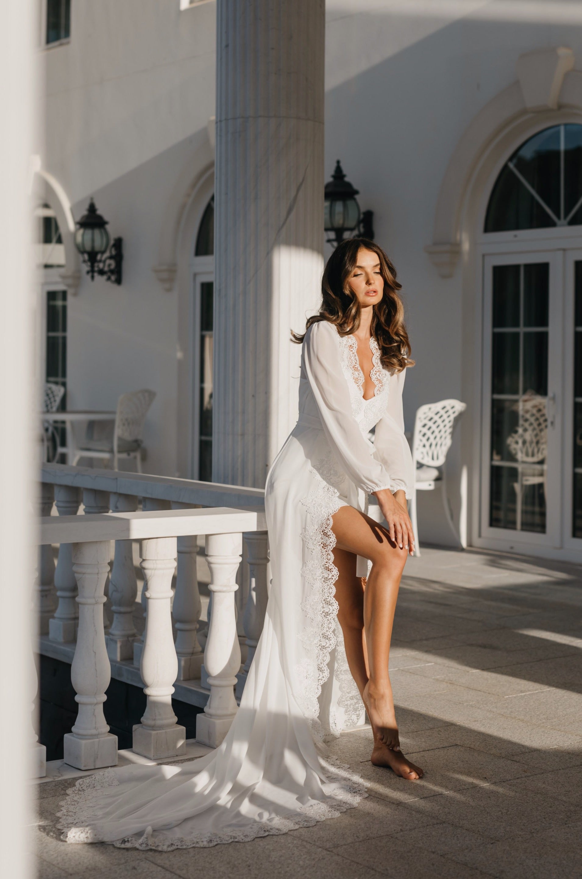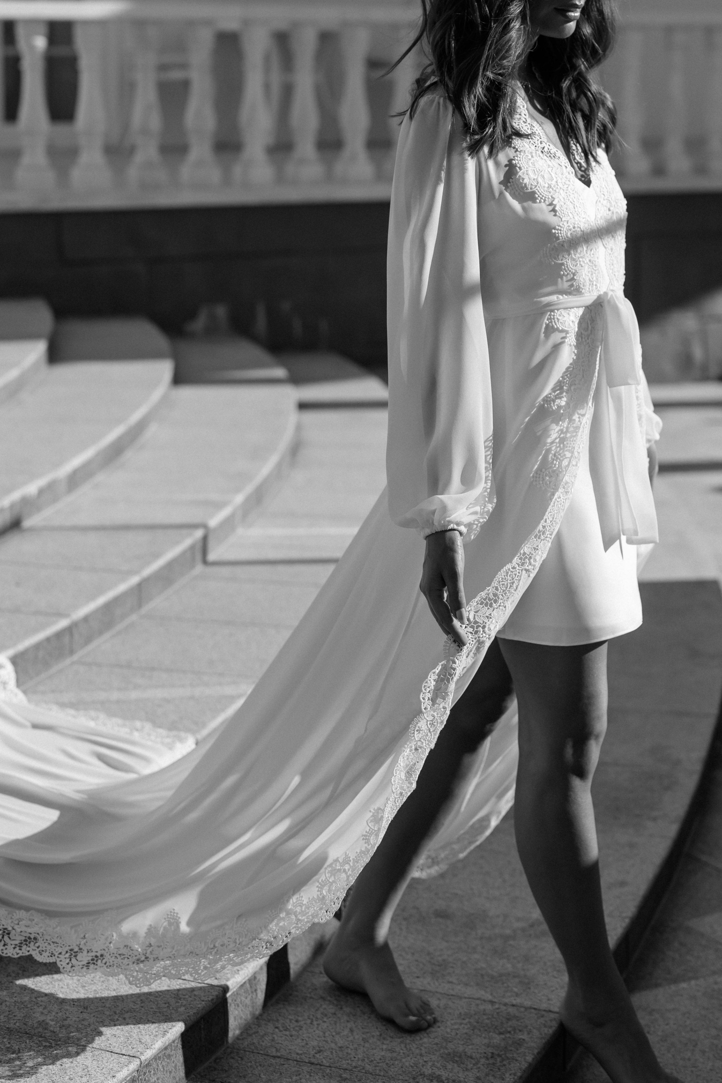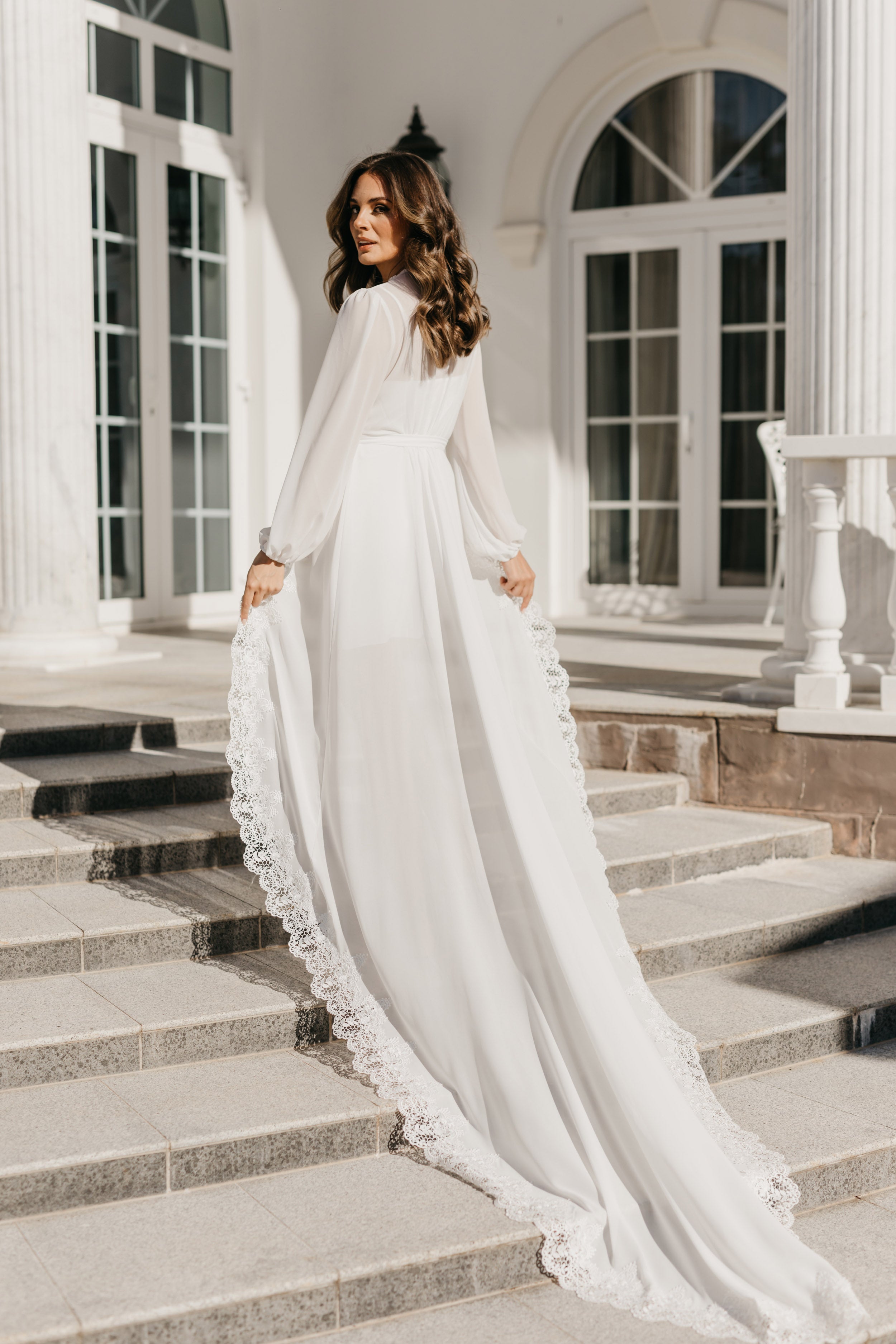 Bridal robes and sleepwear are packed in soft white satin gift bags with ribbon and a gift card, then delivered in postal sachets.