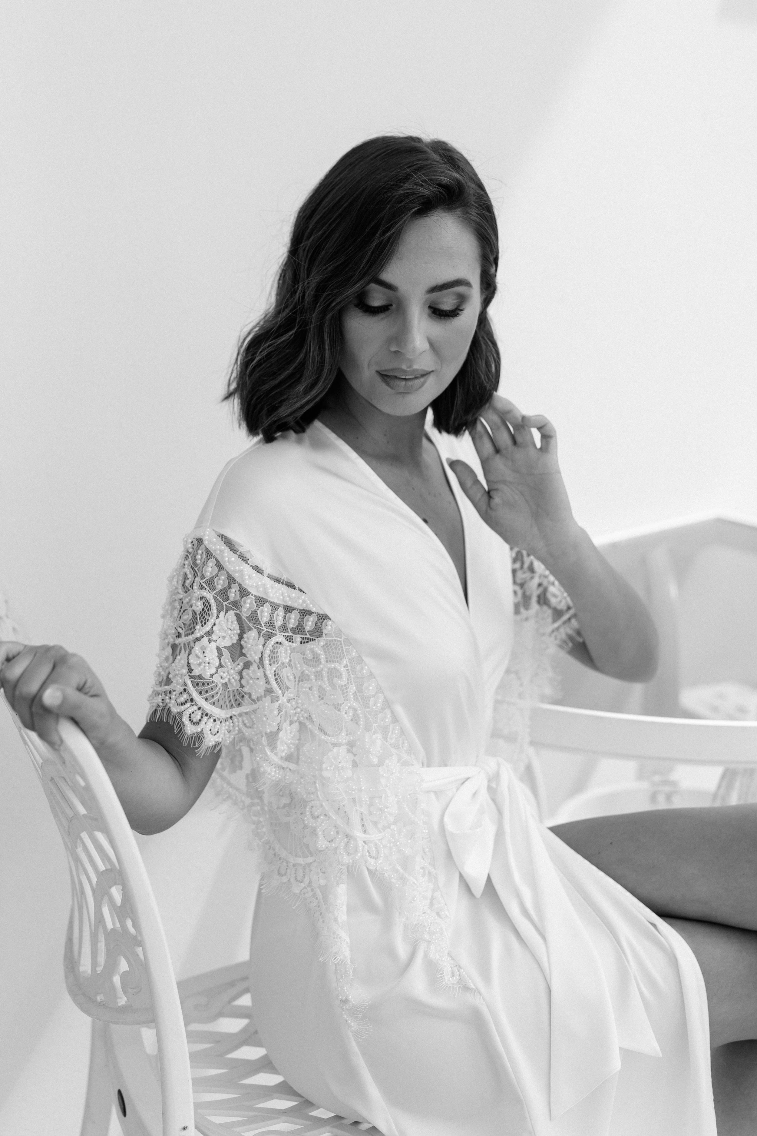 Bridal robes and sleepwear are packed in soft white satin gift bags with ribbon and a gift card, then delivered in postal sachets.