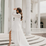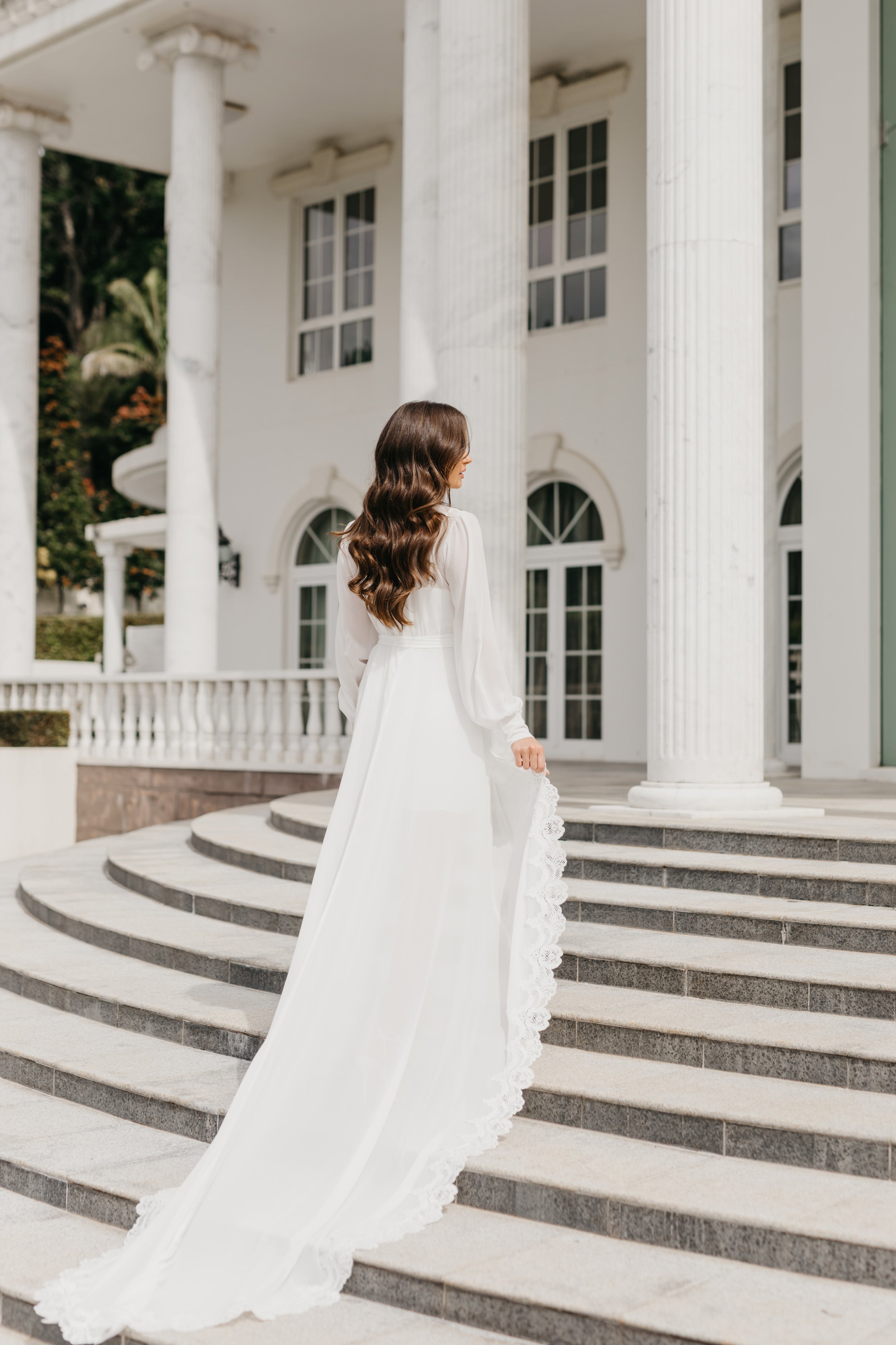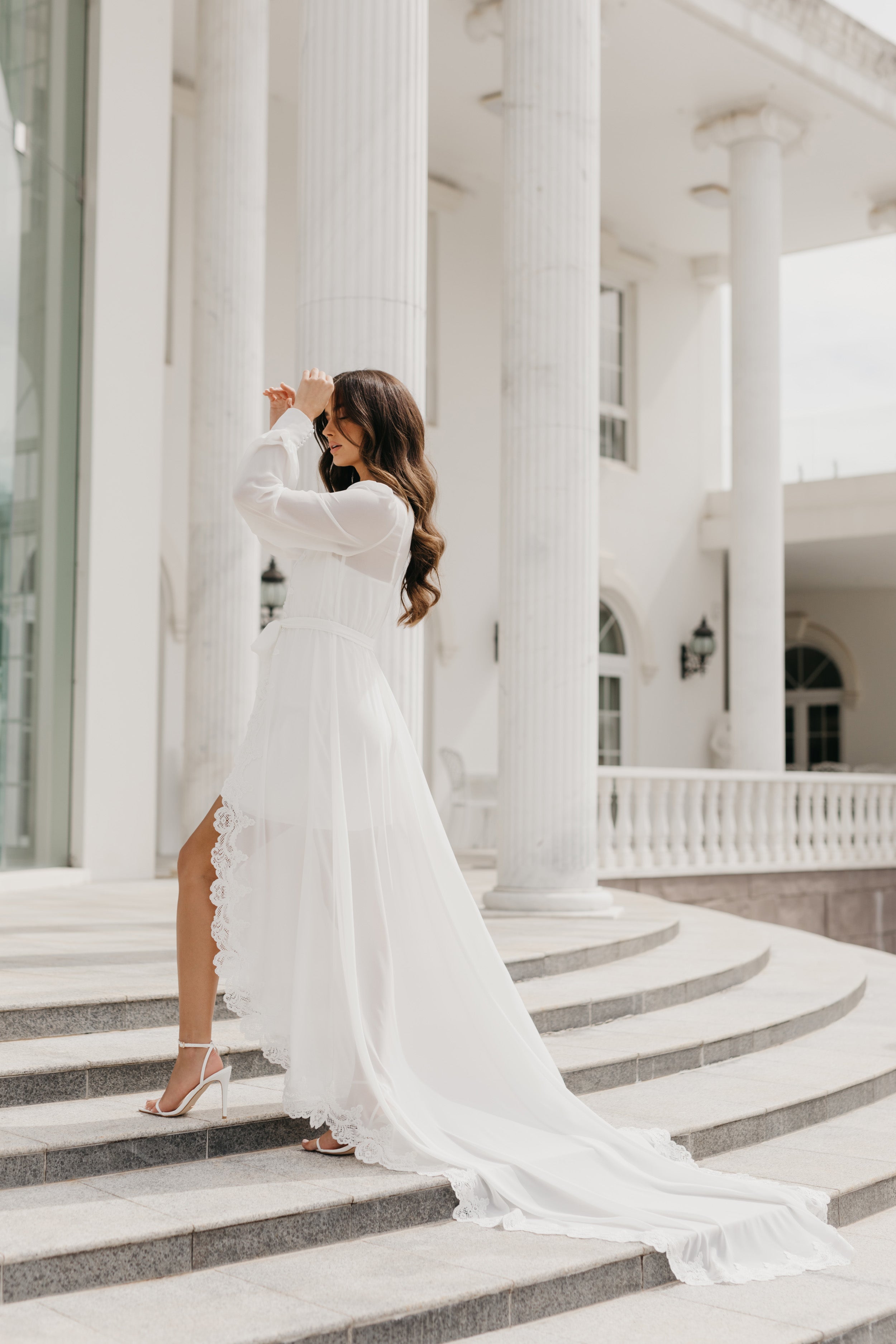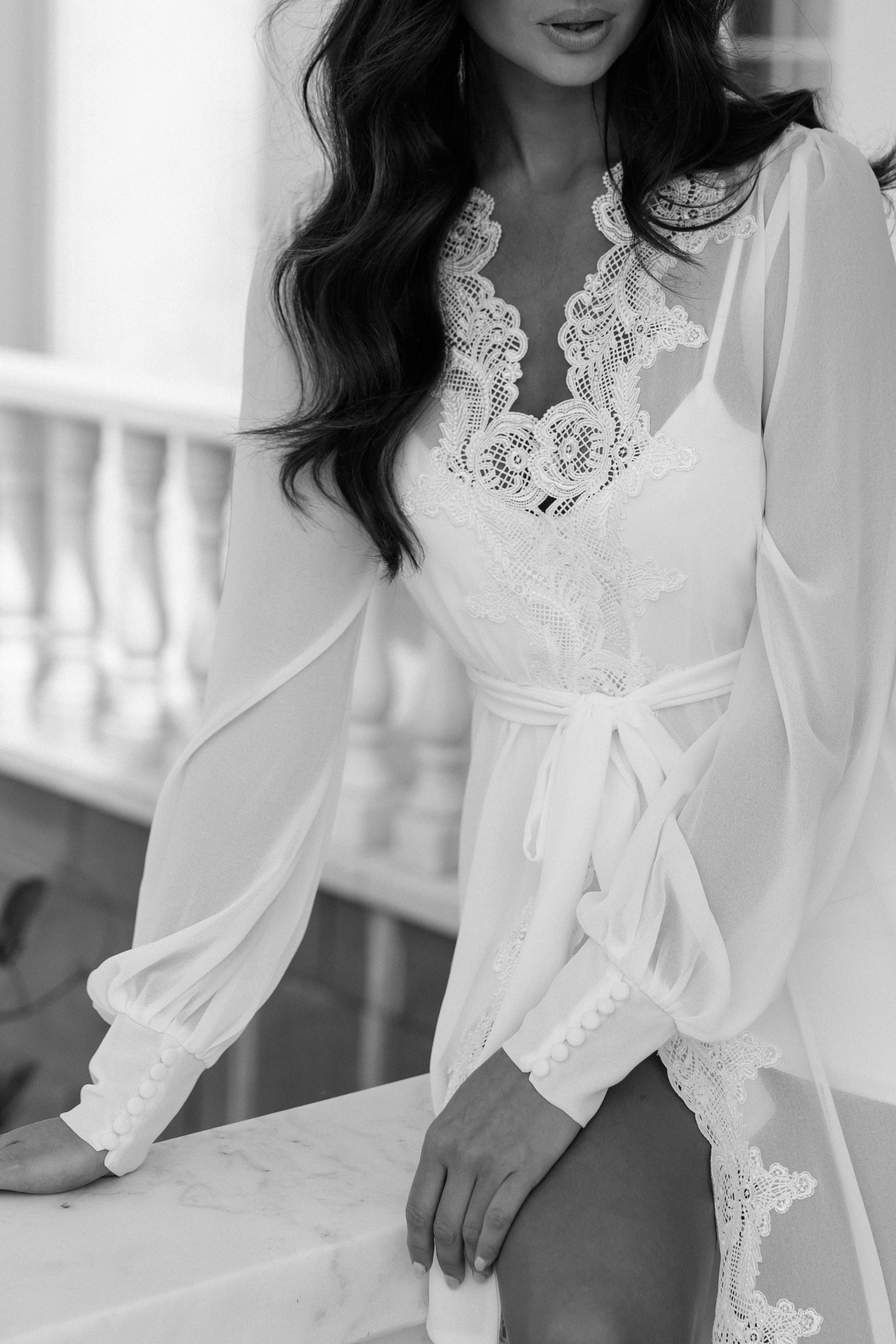 Vivian Lace Trim Maxi Bridal Robe With Train - Includes Slip