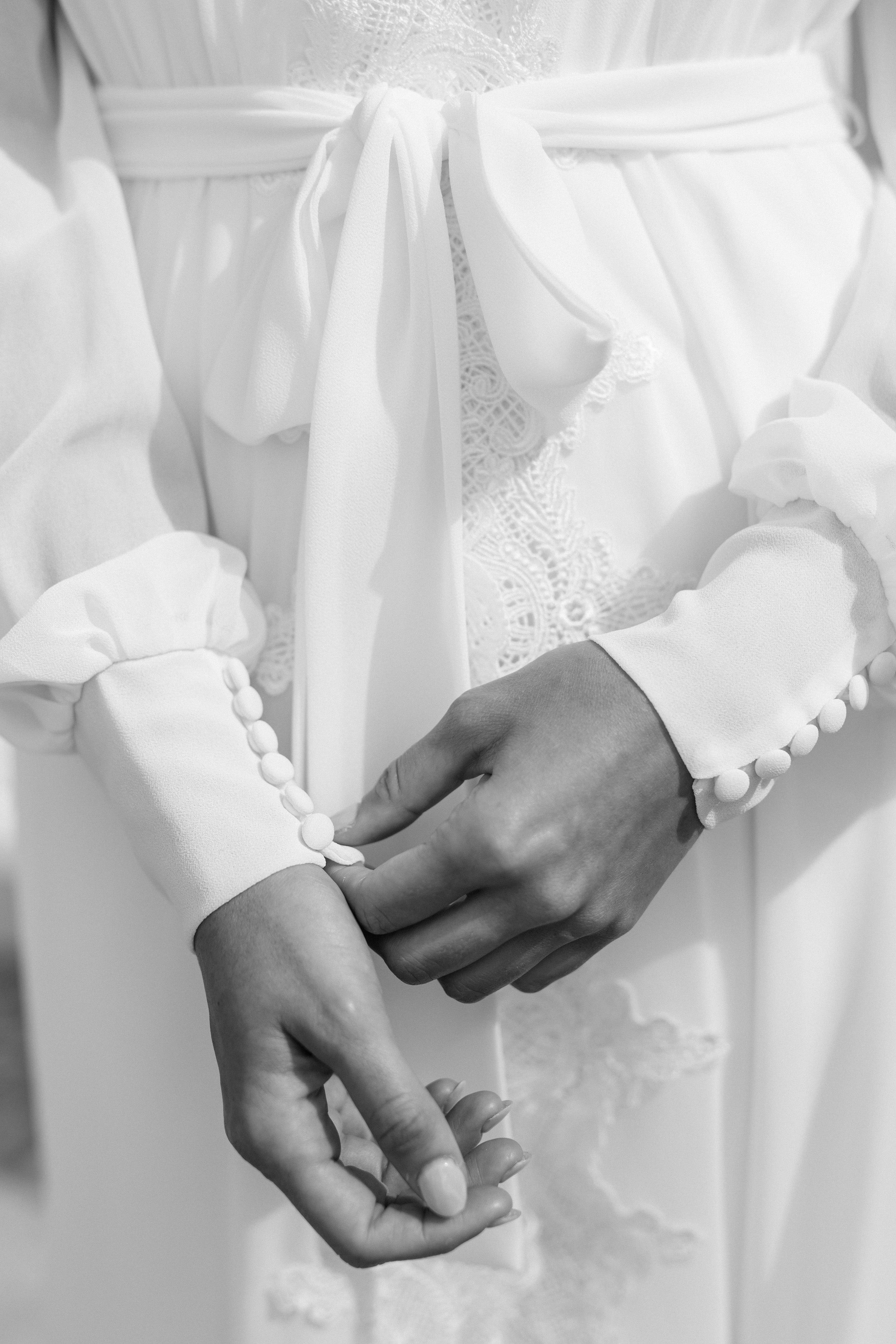 Bridal robes and sleepwear are packed in soft white satin gift bags with ribbon and a gift card, then delivered in postal sachets.