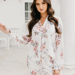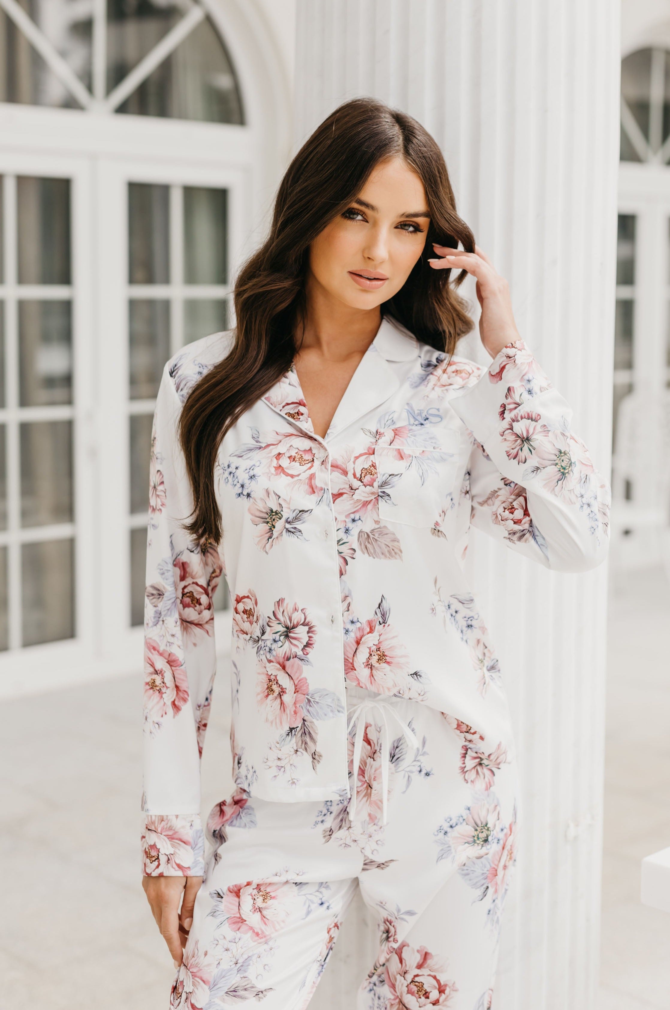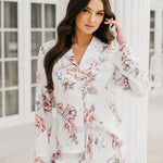 Try as you may to hide it... the world knows a woman in love. Let yourself bloom in Christina Veiled Rose printed long/long PJ set featuring an exclusive floral print designed in house at LeRose HQ. Available in 3 delightful colours, It's the time of the season for loving...