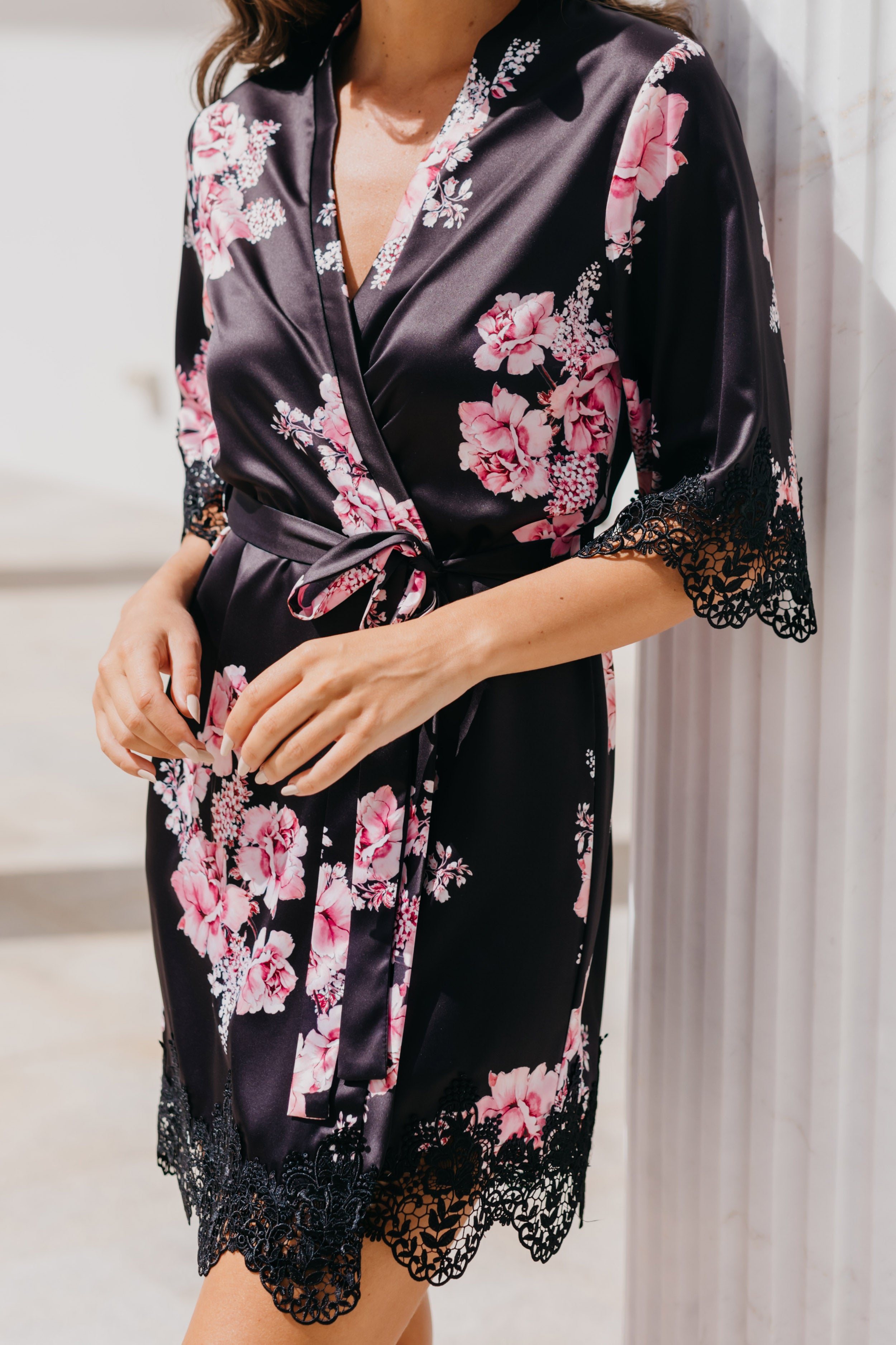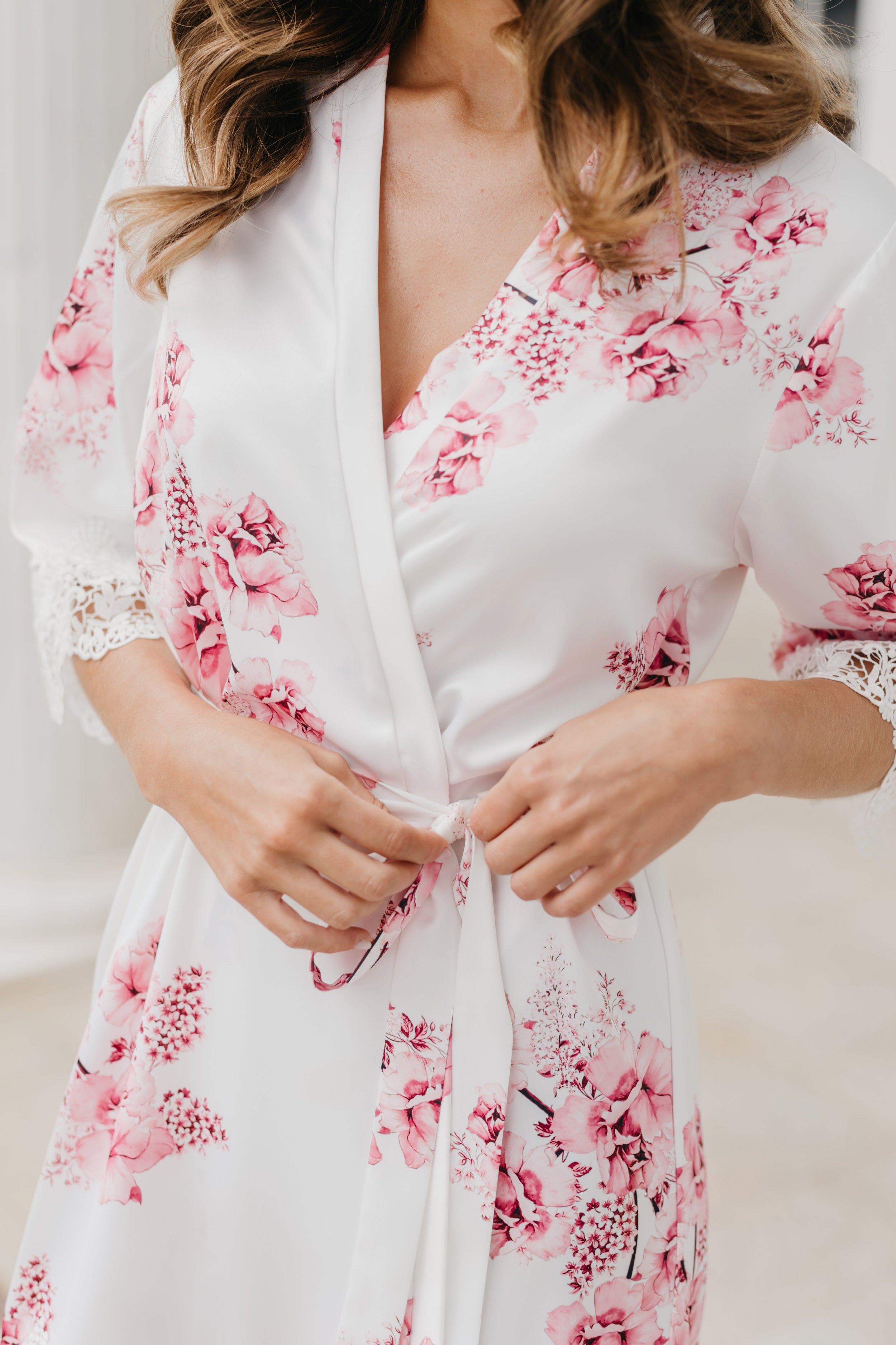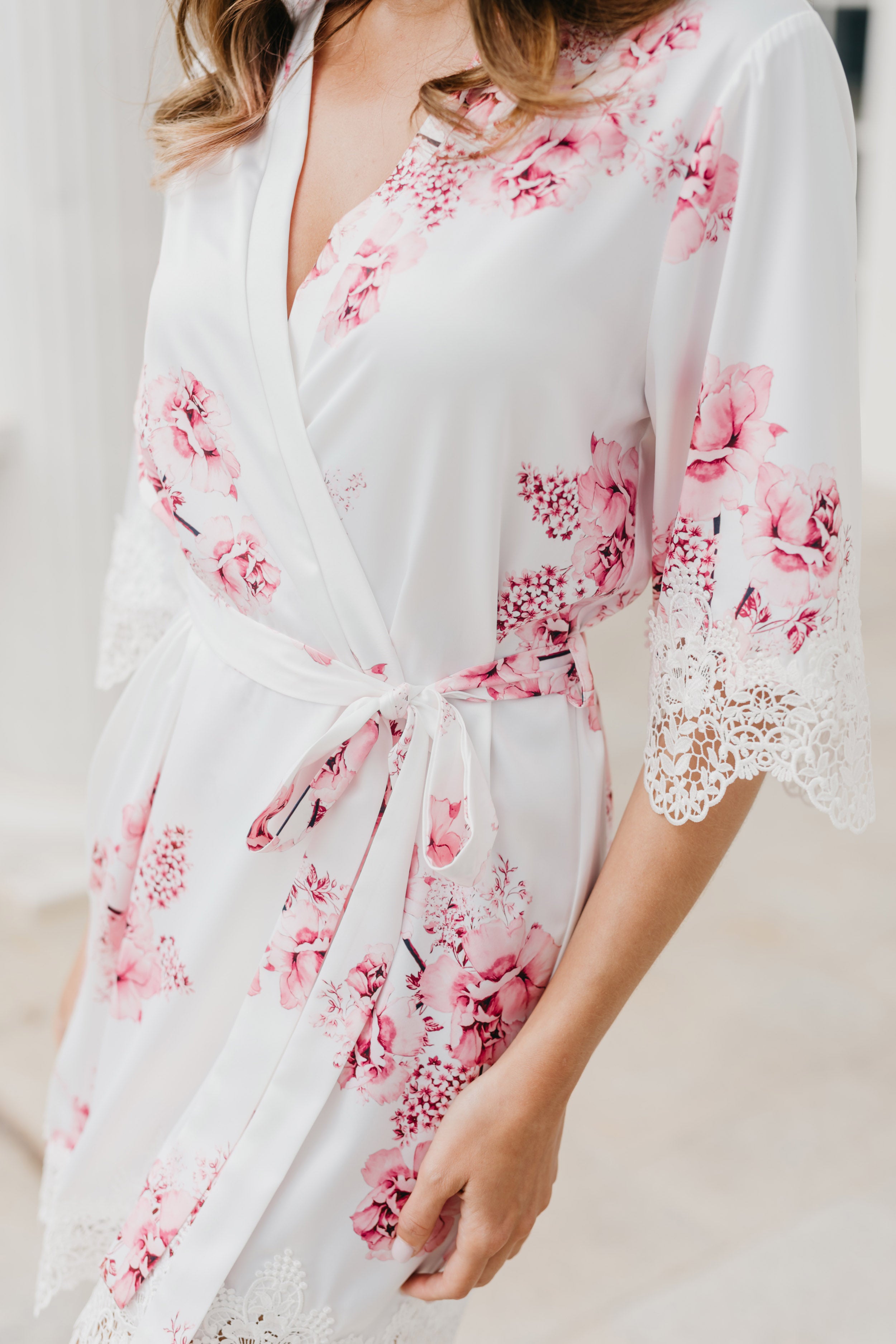 Bridal robes and sleepwear are packed in soft white satin gift bags with ribbon and a gift card, then delivered in postal sachets.