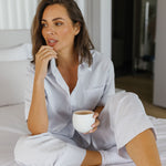 Portia Linen Bridesmaid Pyjamas Long Soft Blue