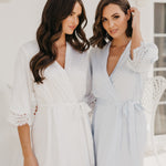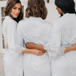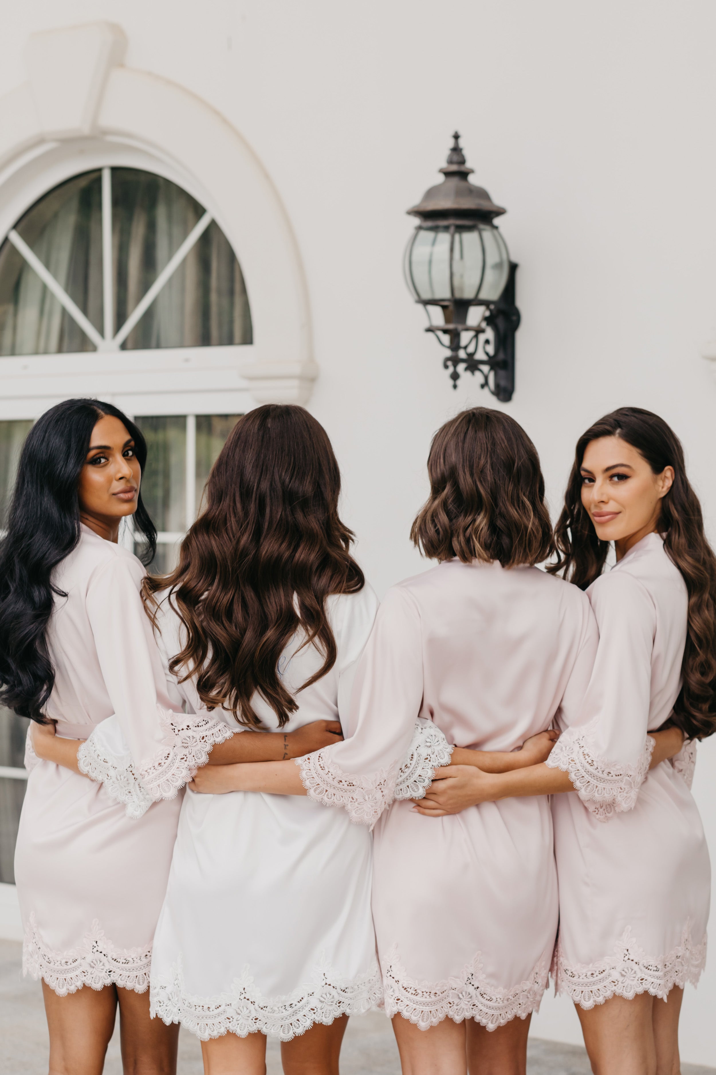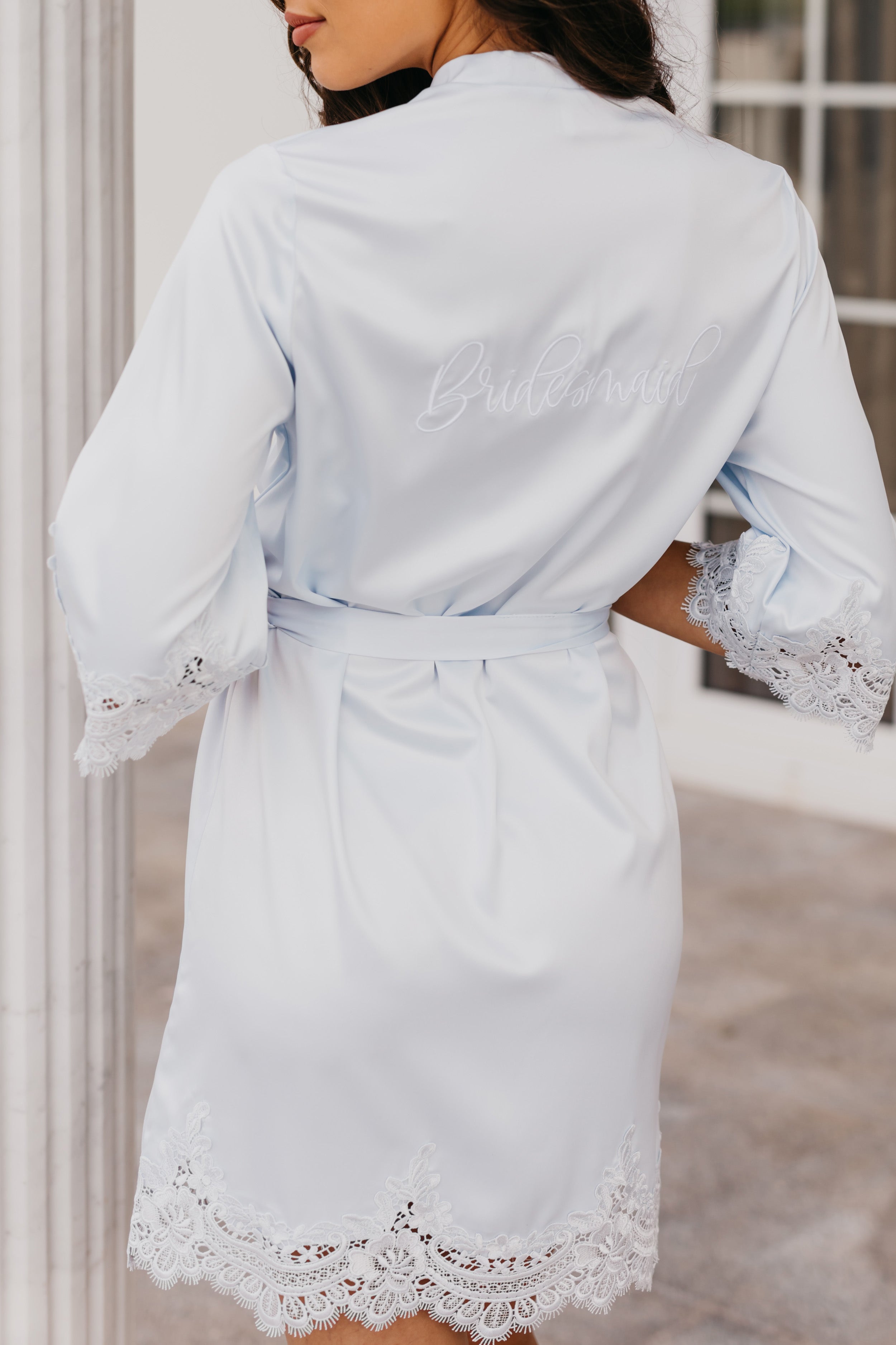 Alessandra lace trim satin robe - embrace the intricate with our Alessandra Lace Trim Satin Robe... featuring exclusive scallop and eyelash laces designed in house at LeRose HQ. Made from our luxurious satin and available in dreamy Blush Pink and Soft Blue... this robe is a timeless as your love.