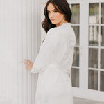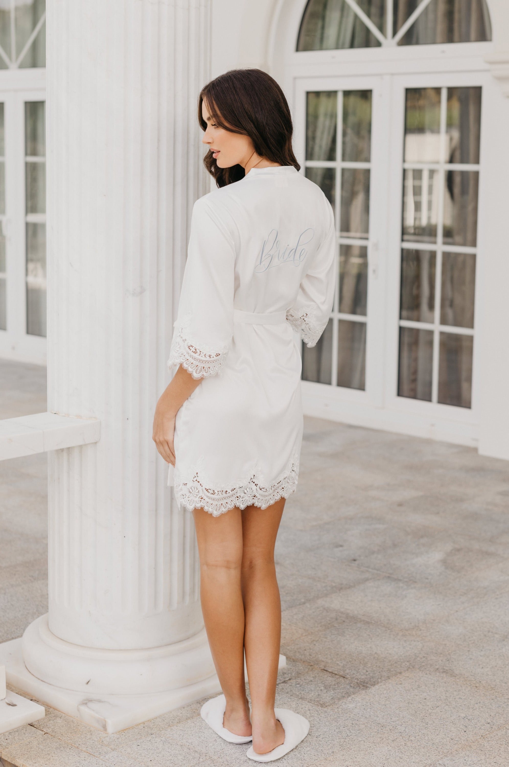 Bridal robes and sleepwear are packed in soft white satin gift bags with ribbon and a gift card, then delivered in postal sachets.