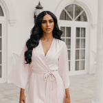 Embody elegance in our Willow Petal Hem Satin Trim Robe. Marrying a timeless silhouette with elegant angel sleeves and a floating petal hem.. the Willow joins classic and contemporary style in a perfect union.
