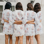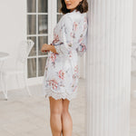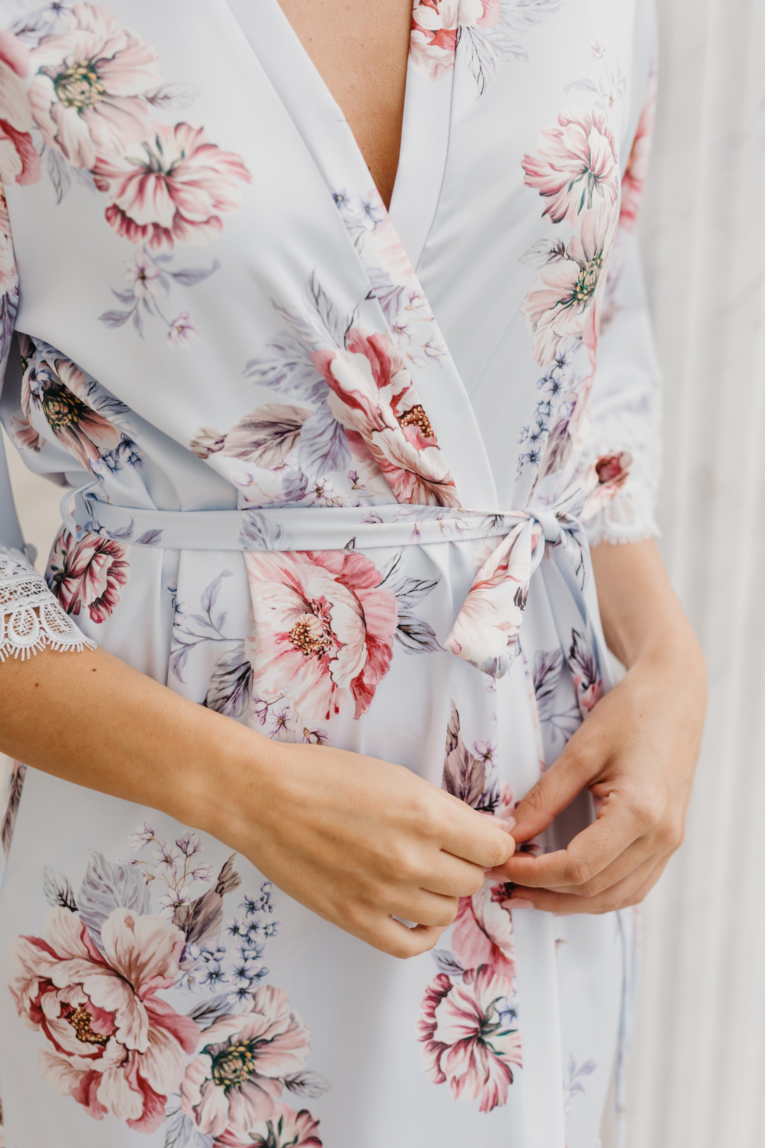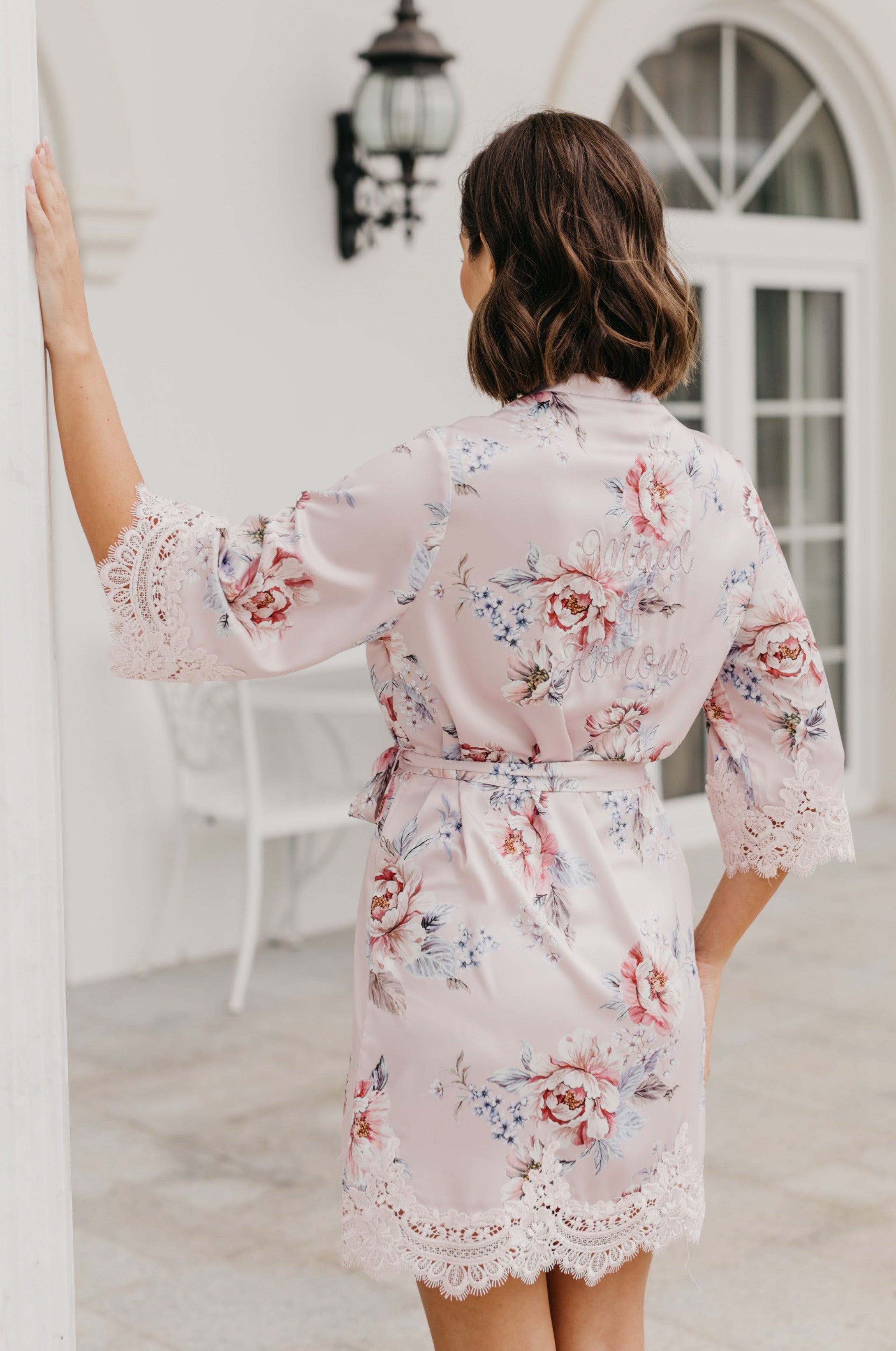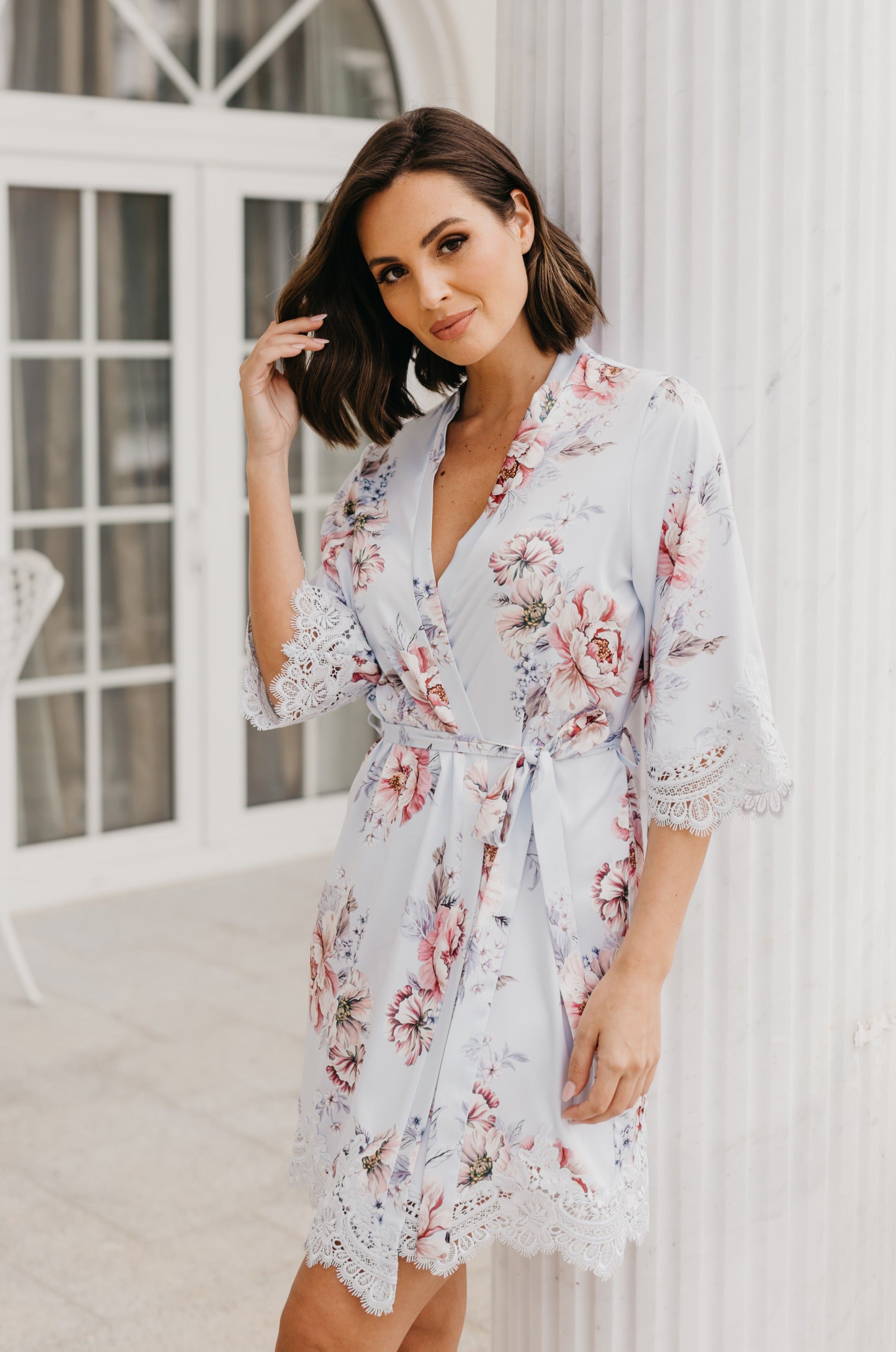 Bridal robes and sleepwear are packed in soft white satin gift bags with ribbon and a gift card, then delivered in postal sachets.