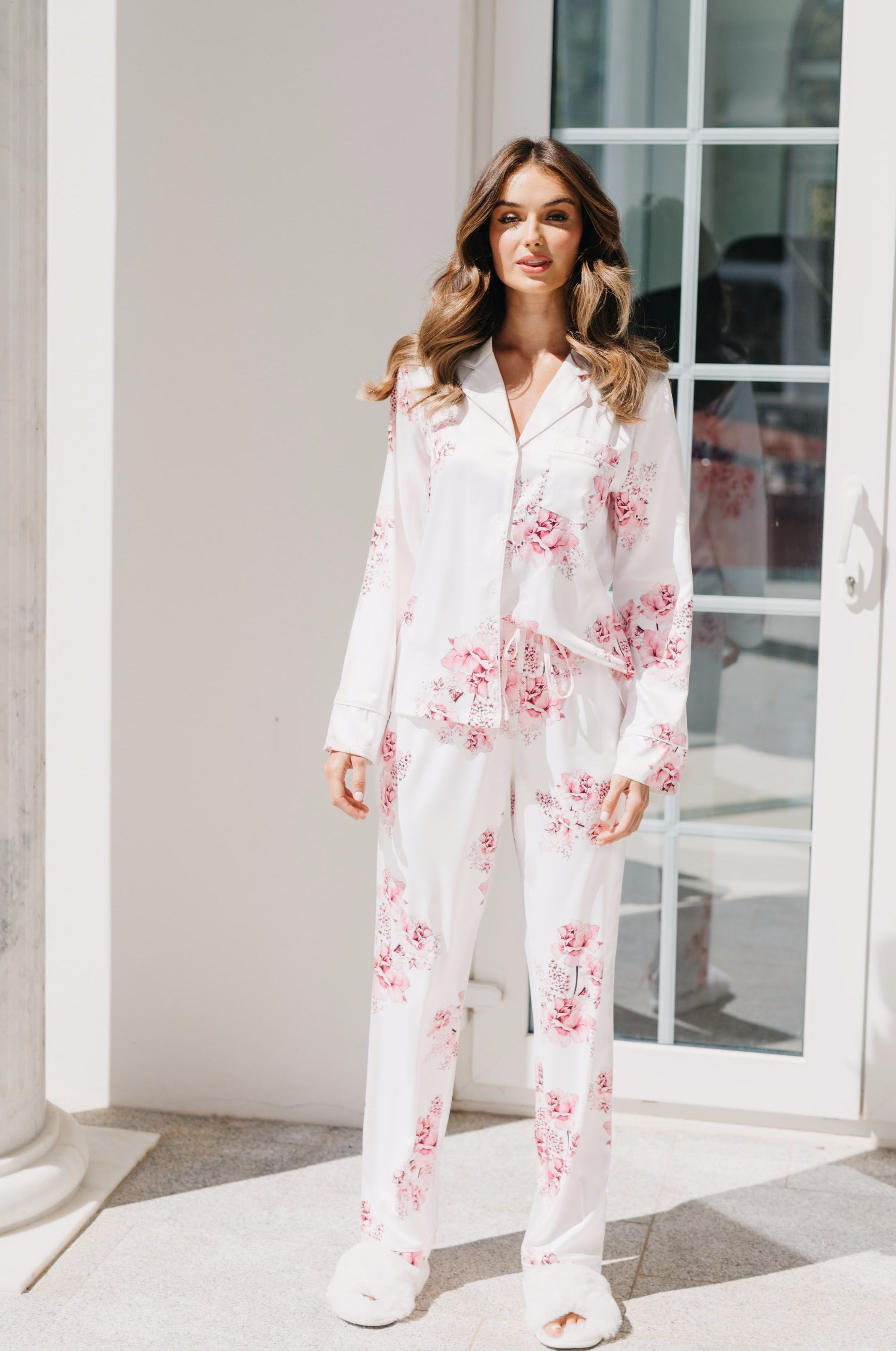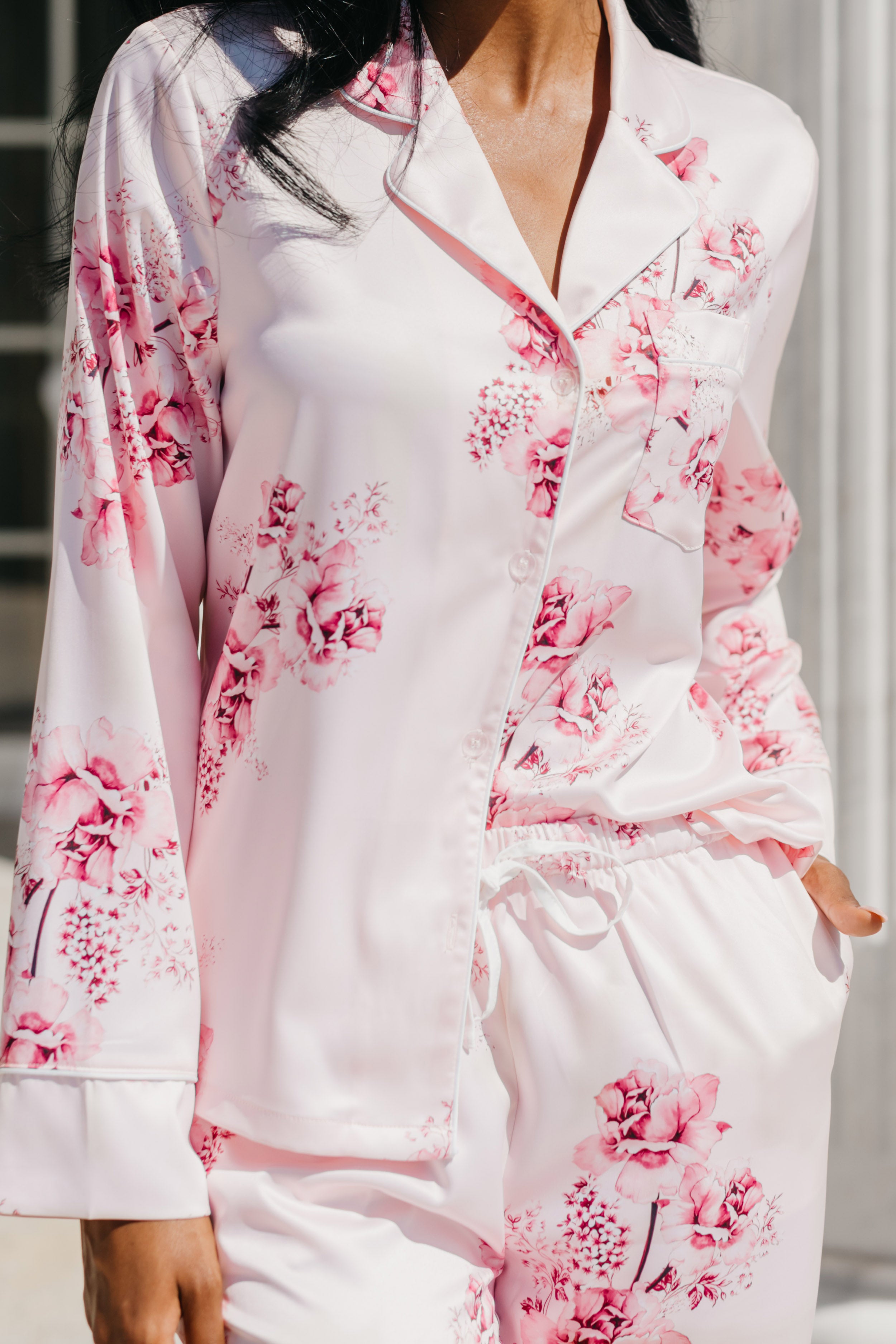 They bring joie de vivre to your days, dancing and Rosè to your nights. Celebrate your treasured ones with our Katerina Satin Printed PJ Set.