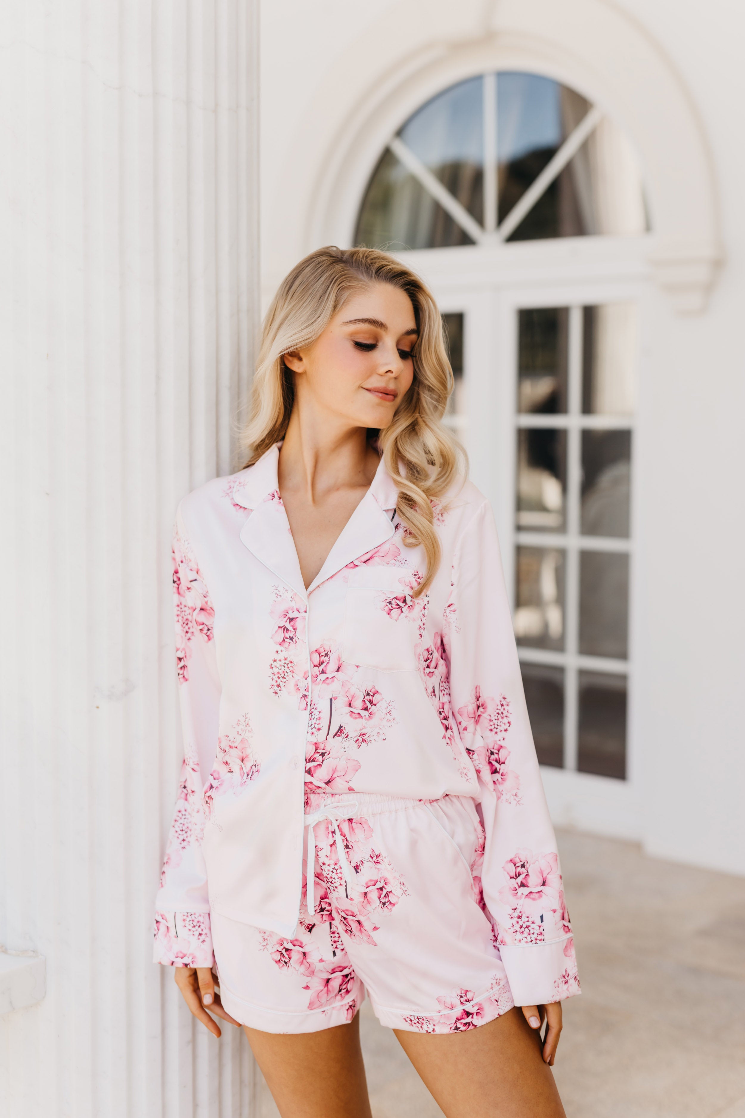 They bring joie de vivre to your days, dancing and Rosè to your nights. Celebrate your treasured ones with our Romi Satin Printed PJ Set.