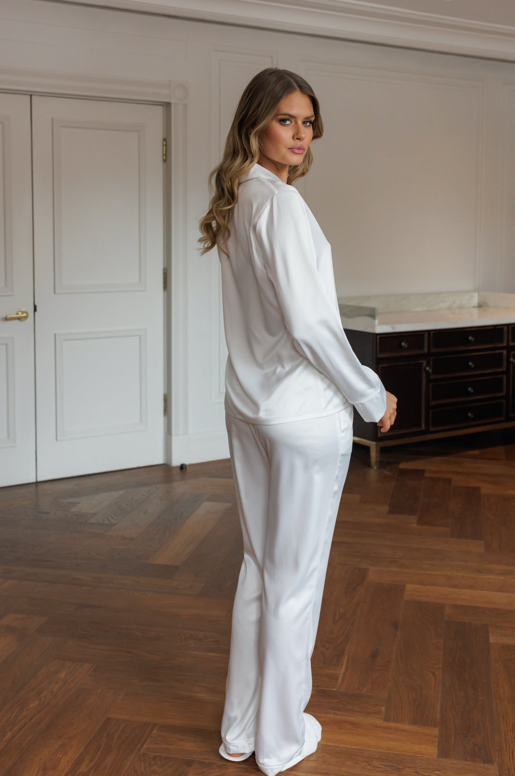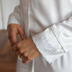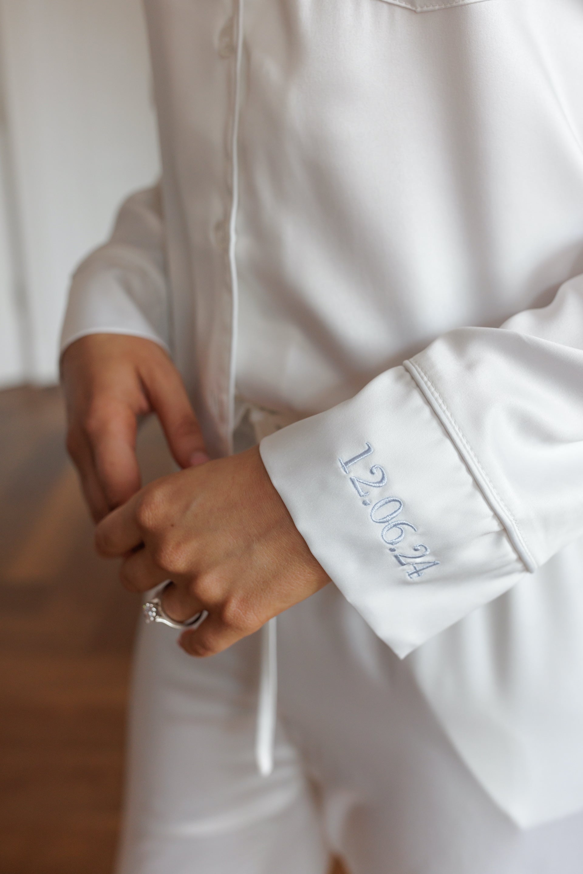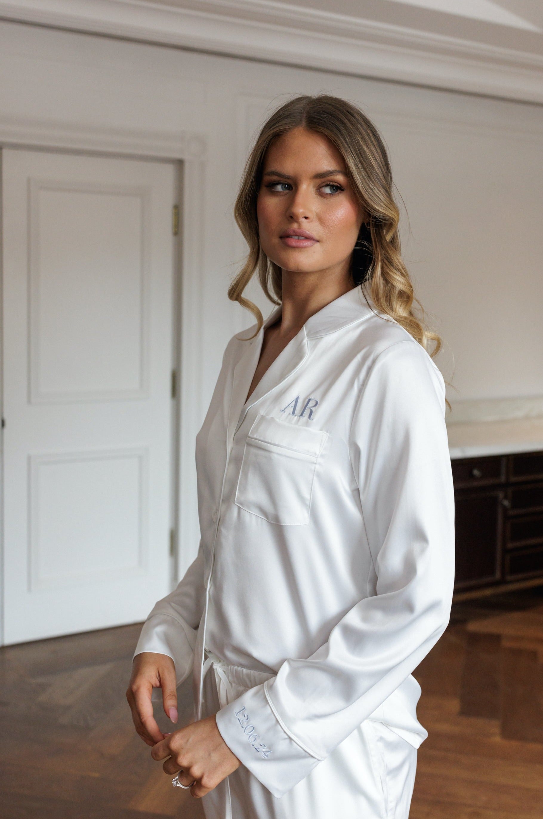 Introducing the Sienna Premium Satin Bridesmaid Sleep Set White — a perfect blend of comfort and style, designed to wear when capturing your special moments. Customise the sleeve with your cherished date or add your name and initals; embrace luxury and love with every detail! Ideal for the bride and her bridal party, these PJs are the ultimate choice for getting ready on the big day.