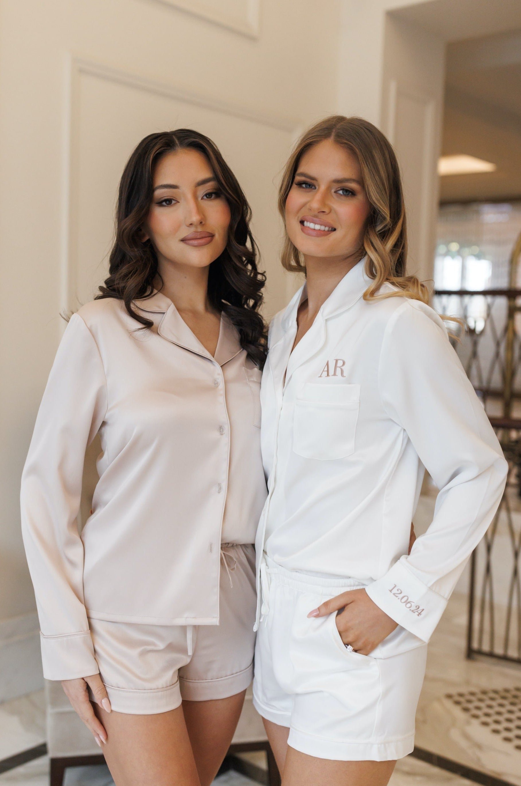 Celebrate your unique forever love with our Zoe PJ set, available in 5 charming colours. Add personalisation to commemorate your special day or new last name. Mix and match with the Lucia and Sienna sleep sets to honour the individuality of your entire bridal party. Crafted from our new premium satin quality, developed by us for you.