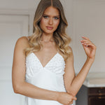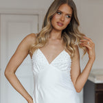 Add the epitome of romance to your wedding day look with our Paris Pearl Bridal Beaded Slip. Featuring scattered pearl details over the bust and crafted from luxurious satin, this maxi length slip exudes on-trend elegance. Plus, with adjustable straps at the back, you can achieve your perfect fit. Perfect for the modern bride.