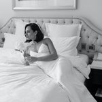 Bridal robes and sleepwear are packed in soft white satin gift bags with ribbon and a gift card, then delivered in postal sachets.