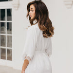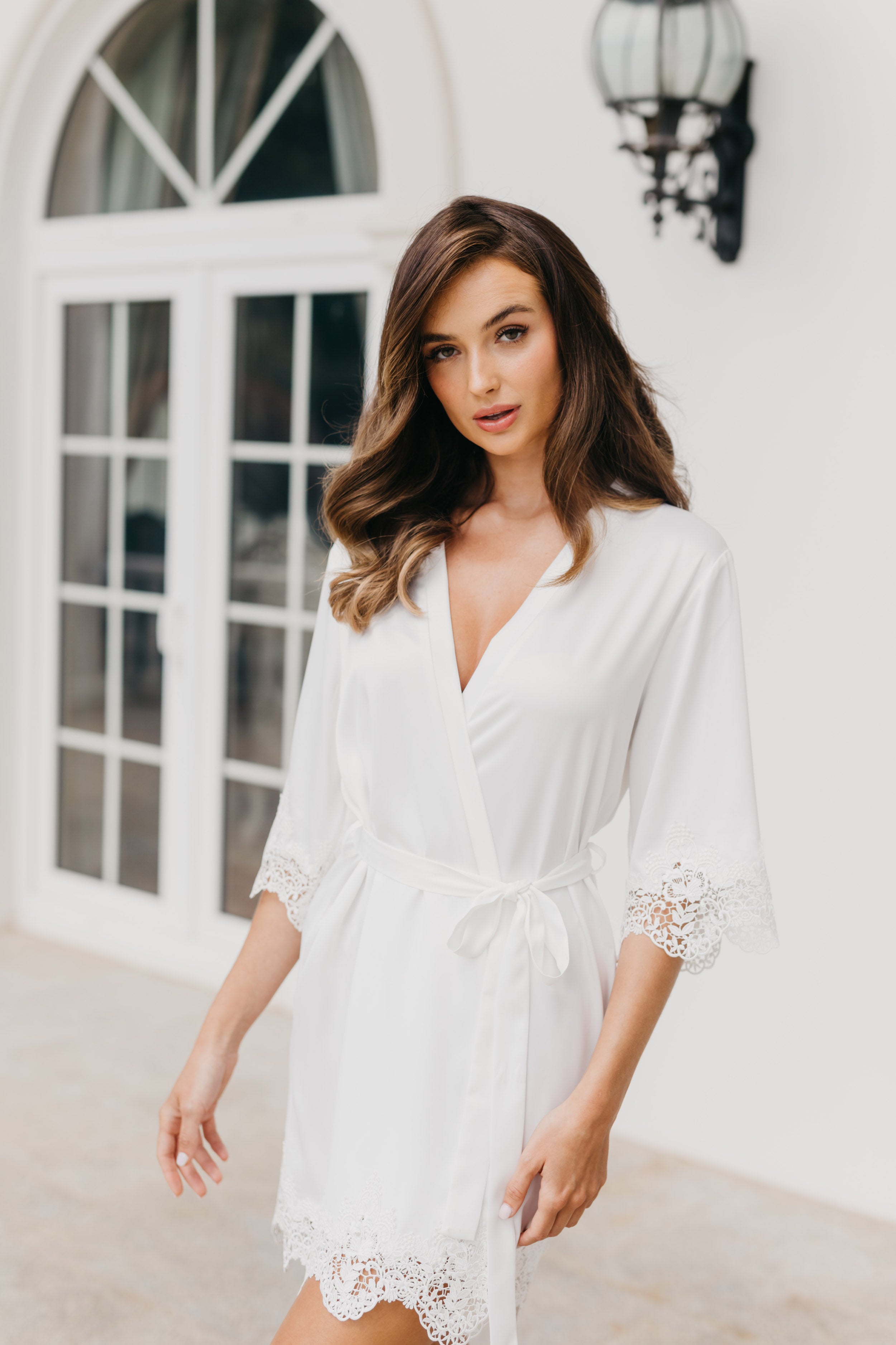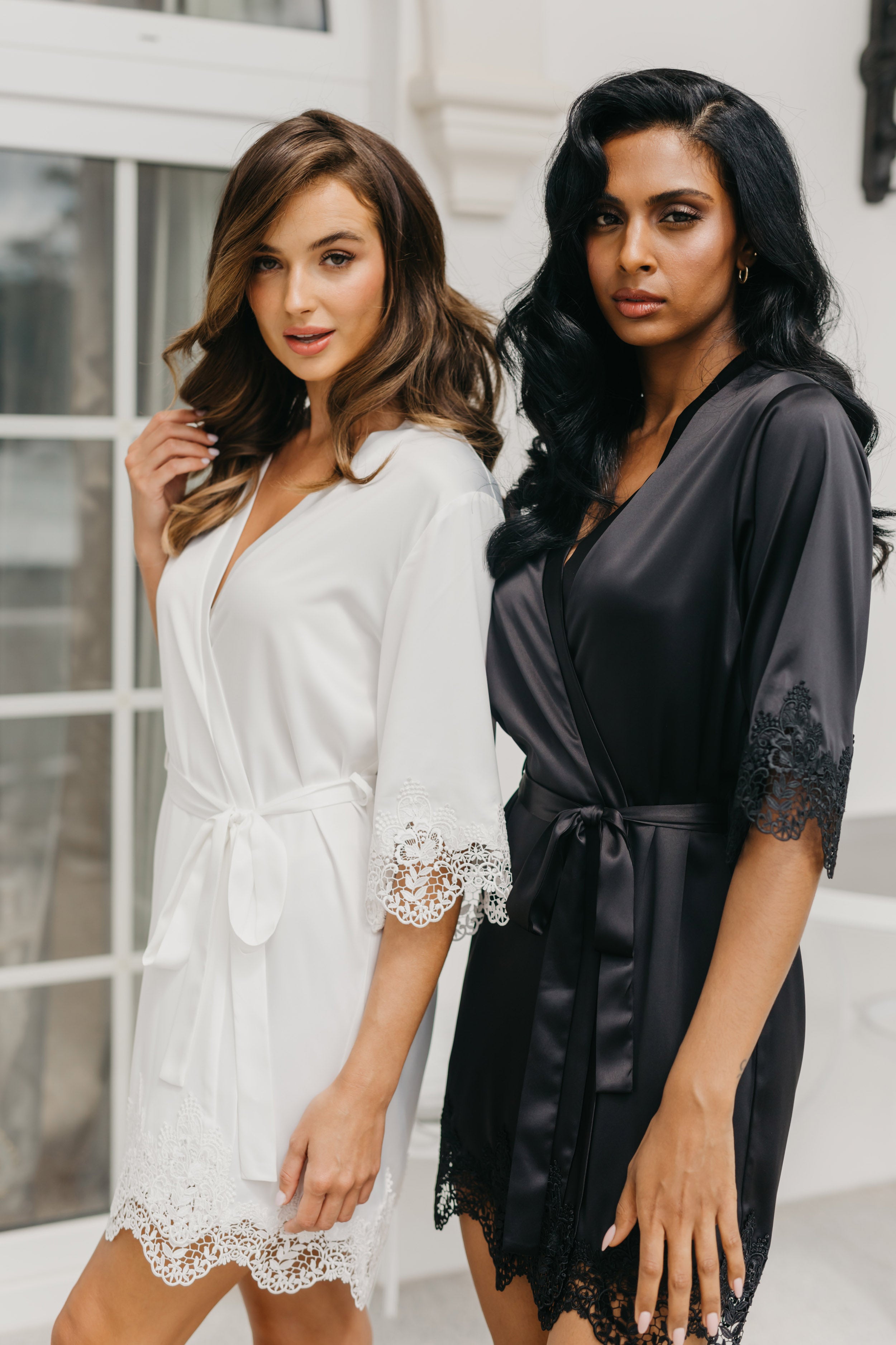 They bring joie de vivre to your days, dancing and Rosè to your nights. Celebrate your treasured ones with our Chiara Satin Lace Trim Robe.