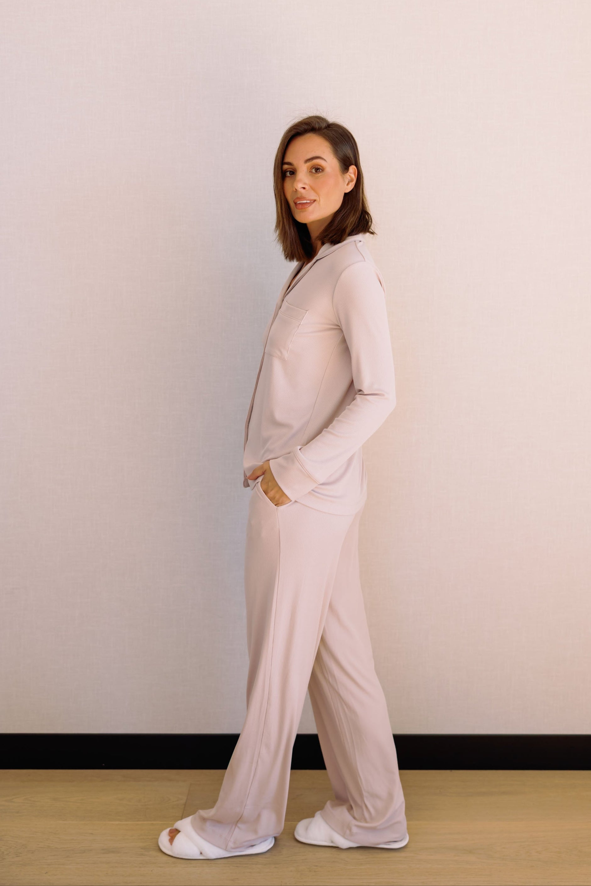Blake Long Modal Ribbed Pyjamas in Champagne